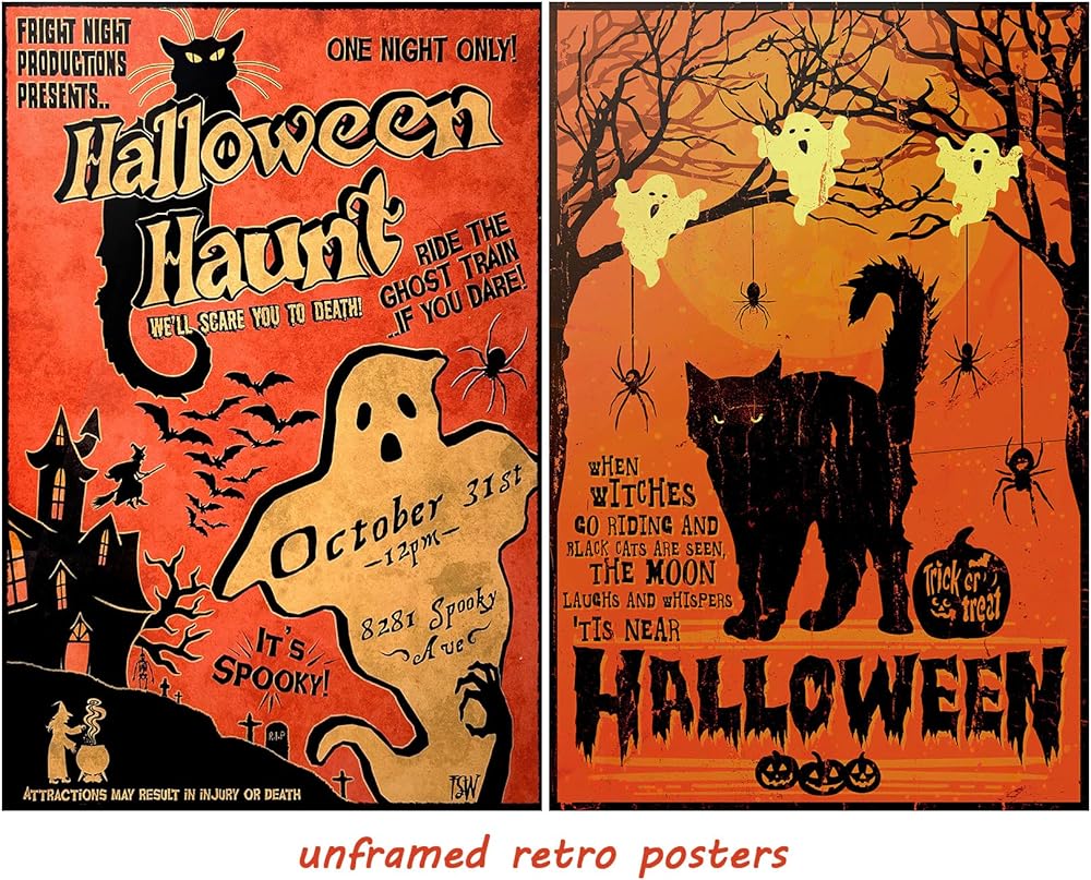 【Size】This set includes 2 posters, each measuring 8x12 inches, allowing for easy and flexible arrangement to create your halloween wall decorations.
