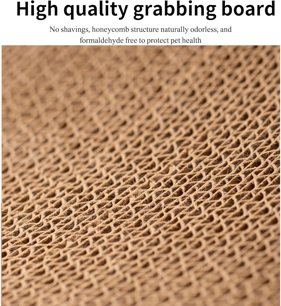 😽 PREMIUM QUALITY AND DURABLE: High quality cat scratching boards do not shed flakes, honeycomb structure is natural and odorless, and does not contain harmful substances. Protect your pet's health. Solid wood board, sturdy and durable, multi-screw design structure is solid. A set of cat scratching board replacement core is also included, a very cost-effective set.