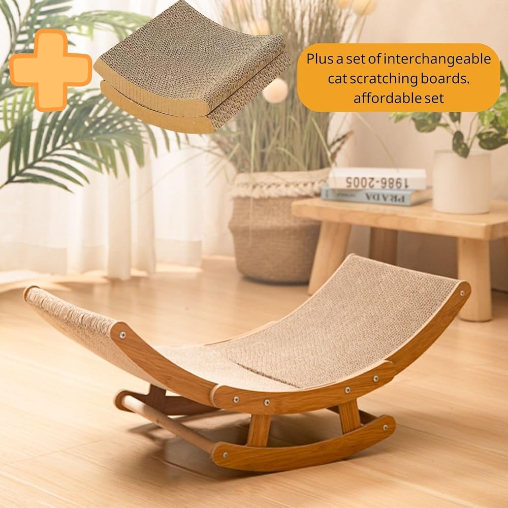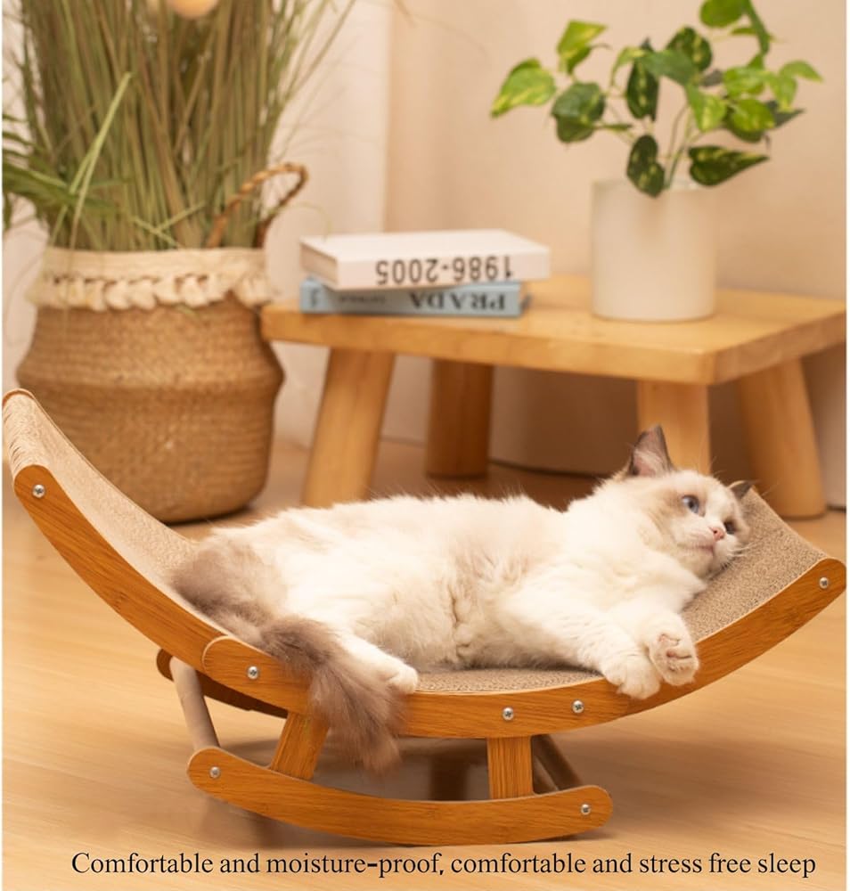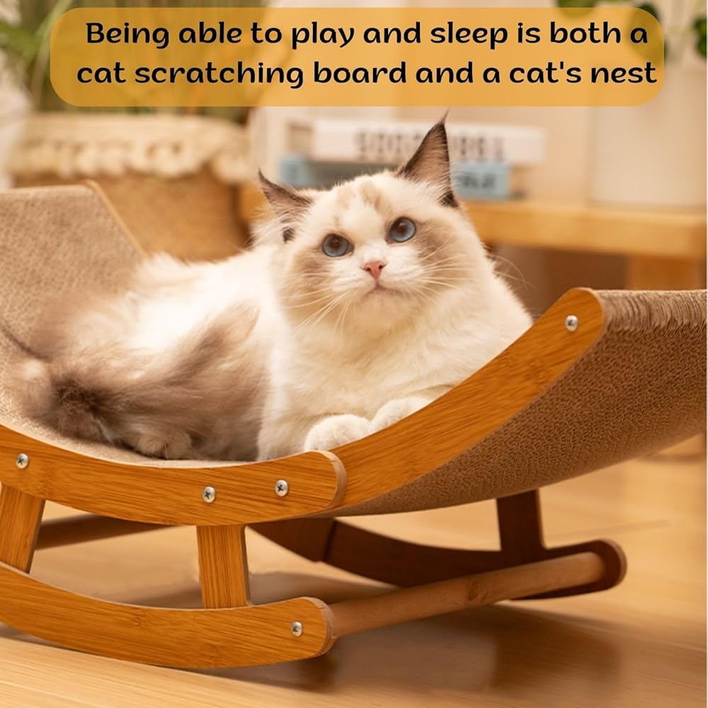 😽 EASY TO INSTALL This rocking chair cat scratching board is easy and hassle-free to install, it only takes 15 minutes to set up, so your cat can enjoy scratching and resting immediately.