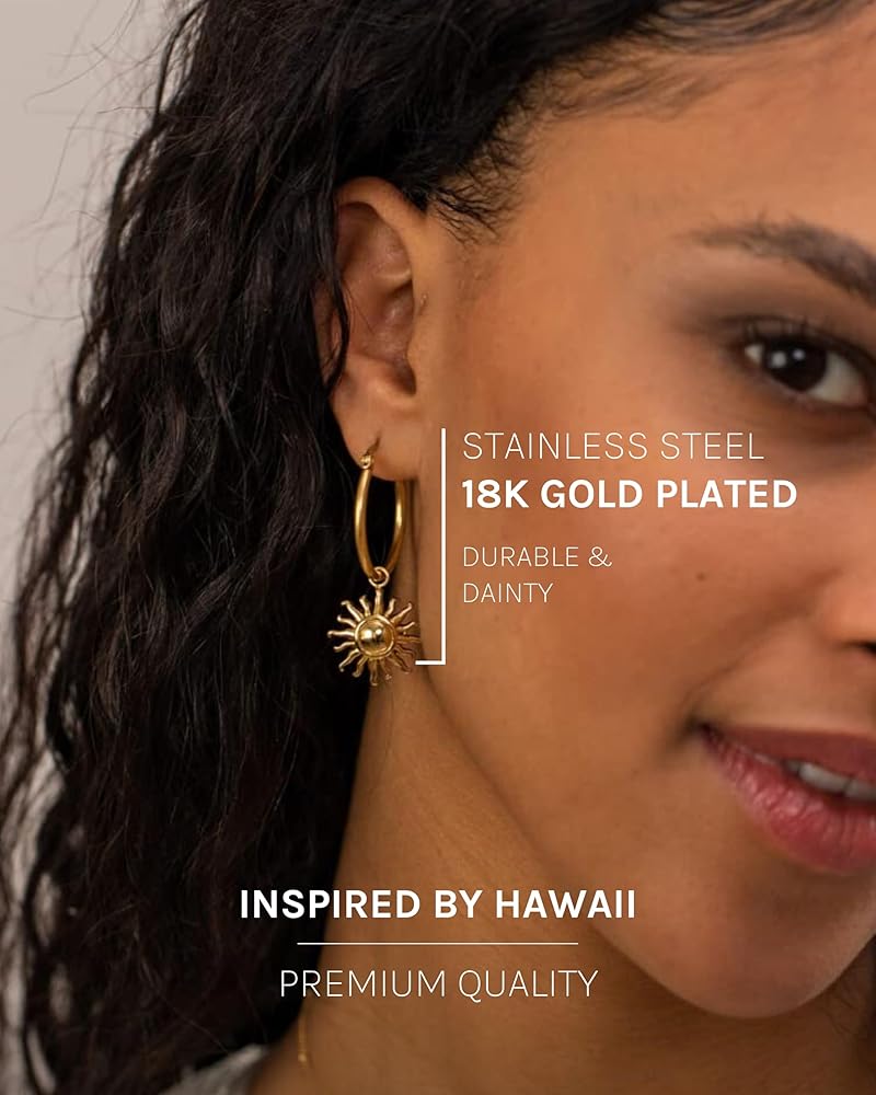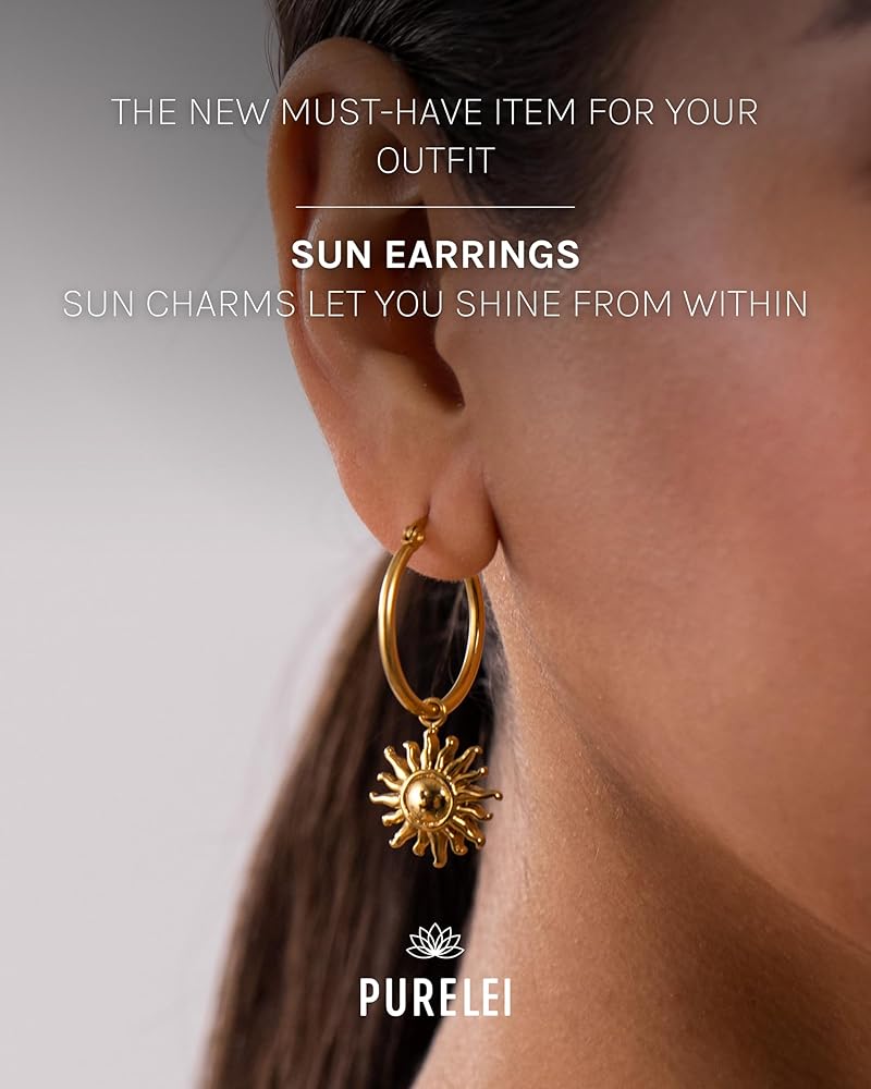 PURELEI® Sun Earrings – 18K Gold plated stainless steel jewelry – Water-resistant earrings for women – 0,92 inch diameter – Fashion jewelry for your individual look