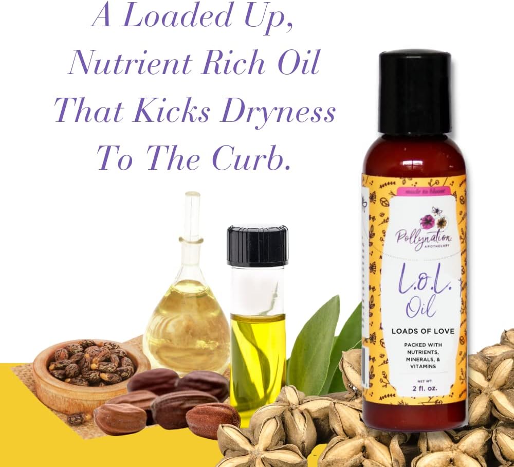 Pollynation "LOL" Loads of Love Hair Oil (2 oz) | Multi-Benefit Hair Oil for all Hair Types | Organic Castor Oil & Natural Ingredients for Protection with Dry Skin or Hair | Handcrafted, 100% Pure