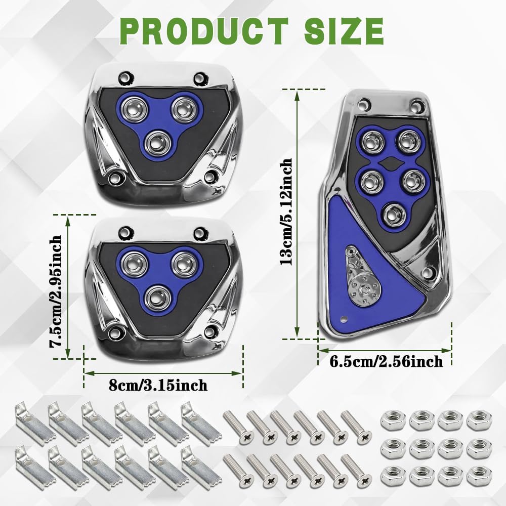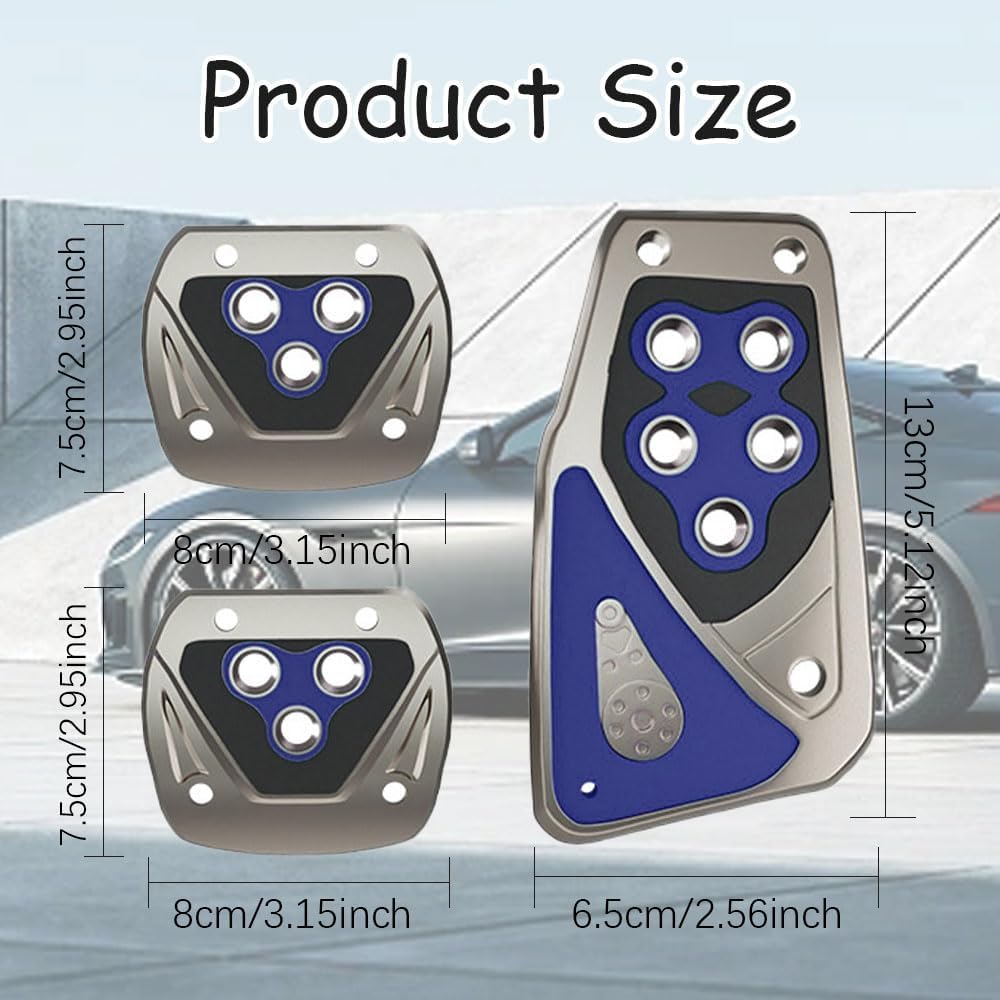 Product size: The clutch pedal and brake pedal are 3.2*3inch, the acceleration pedal is 5.1*2.69inch