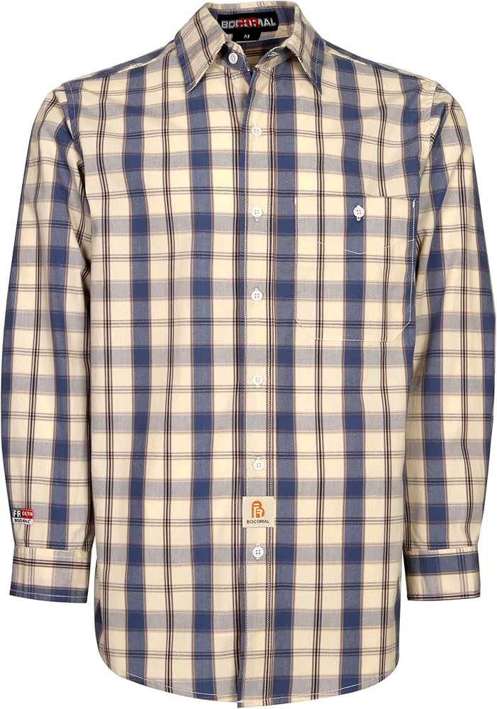 SAFETY MEETS FASHION:This FR work shirt featuring with BOCOMAL designed plaid,provides a perfect,cmfortable and soft fit also fashionable.