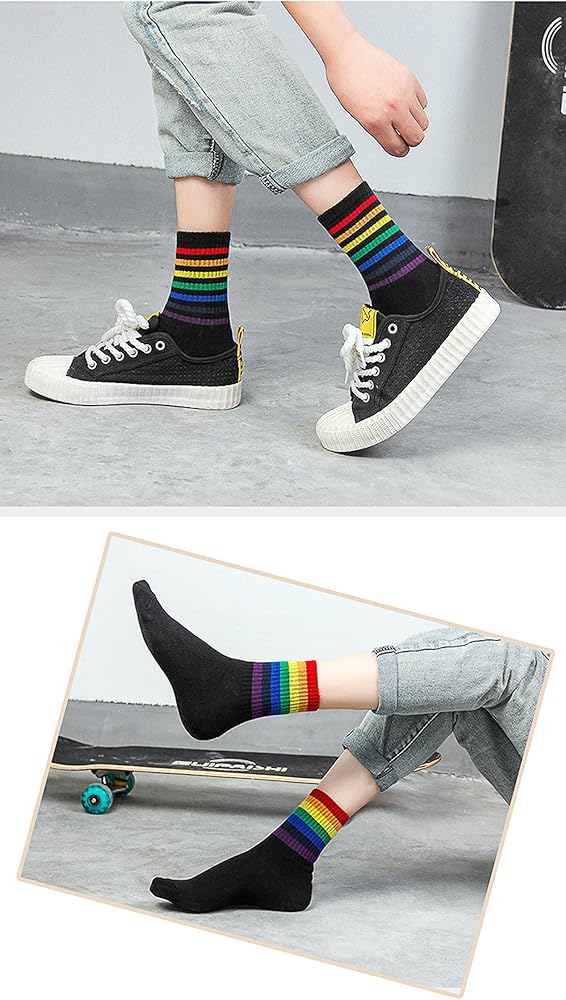 If you are looking for socks that you can wear for athletic and for fashion purposes, this neon colored striped crew socks is the best choice! Our these colorful warm ankle sock are custom-made for those who share passion and love for fashion. This trendy quarter socks gives your legs a skinny and unique appearance. You could match it with your pants or shoes, it is soft fit on your skin, suitable both for indoor and out door activity. You can wear these long slouchy dress socks with athletic shoes, walking shoes, rain boots and even work boots. Excellent flexible elastic in the arch area for support, fits your feet perfectly. The toe and heel portion are reinforced for added comfort and durable to this novelty casual socks. Fibre with strong elasticity, makes this trail socks soft and ventilation, helps your feet stay cool and dry by rapidly wicking moisture away from your skin. Our funky anklet socks is designed for everyday use and boost your performance for any sport activity like yoga, gym, cycling, running, walking, travel and so on. You could wear this fashion boot socks on party, casual, club, daily wear, etc.. Socks size 9-11, could fit most feet, it is a great gift for your lovers for any occasions. 5 pairs of socks in one pack, it is great value for money. You are worth having one!