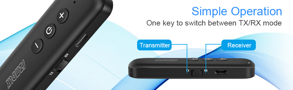【Easy to Use】During specific mode, you can control play/pausing or volume on the adapter. Bluetooth transmitter and Bluetooth receiver designed with a slider switch, you can switch between TX and RX mode with one key which is easy to set up. And support automatically re-connect function.