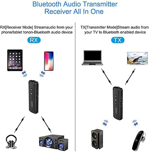 【Built-in Rechargeable Battery】All day audio transmission, built-in 300mAh battery serves you about 7 hours on transmitter mode and 10 hours on receiver mode after 1 hour of full charge. Support using while charging.