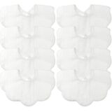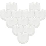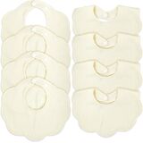 تصميم أنيق وأنيق: تتميز المرايل الخاصة بنا بتصميم أنيق وعصري يكمل أي ملابس. اللون الأبيض الصلب ينضح بالأناقة والبساطة، مما يضيف لمسة من الرقي إلى ملابس طفلك أثناء تناول الطعام.