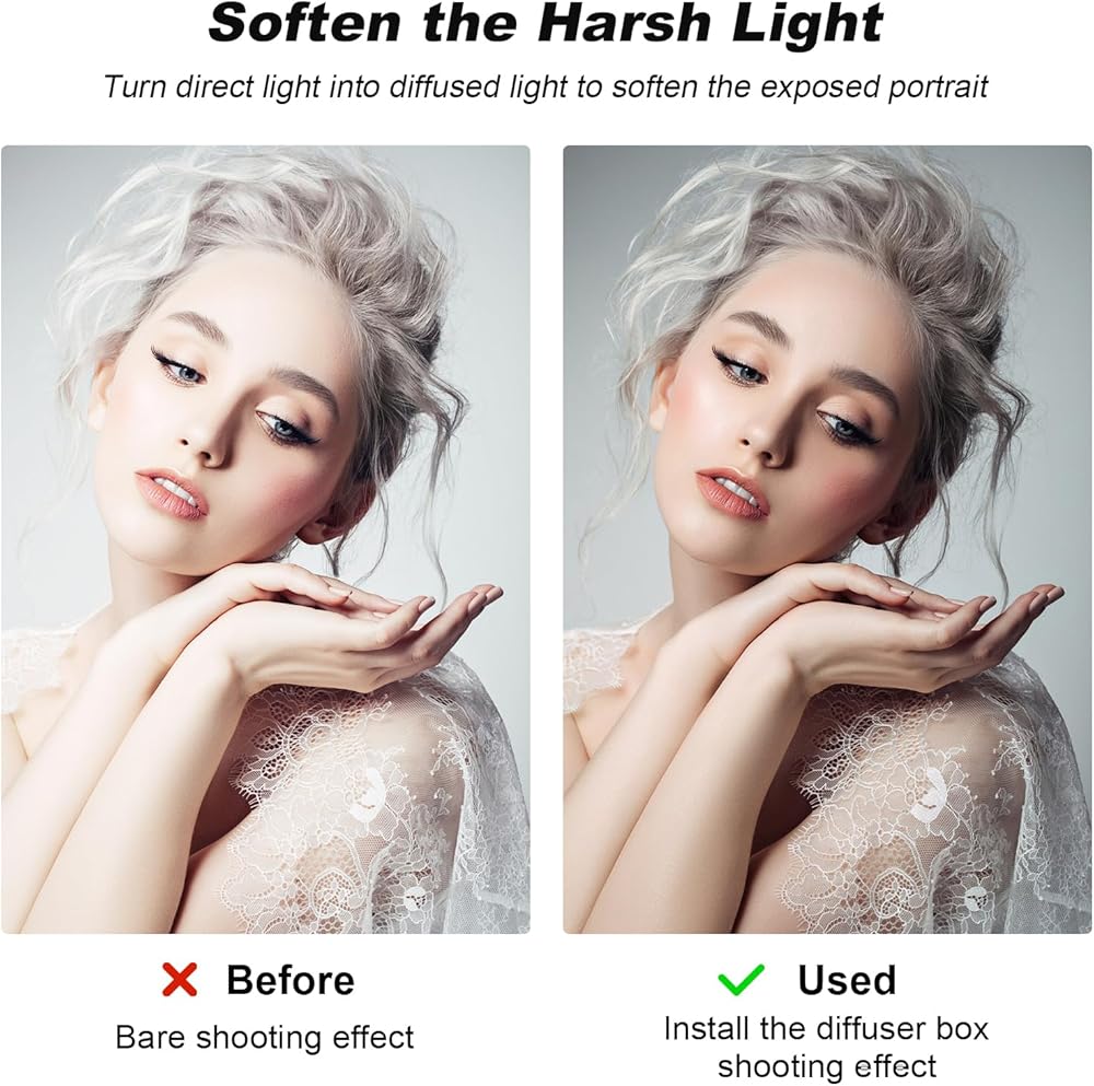Diffusers spread out the dense burst of light emitted by flashes, producing a subtle and flattering illumination for various types of photography, including portraits, weddings, outdoor events, fashion displays, and product displays.