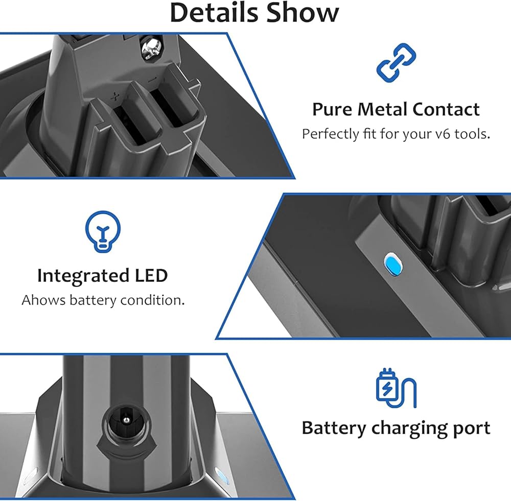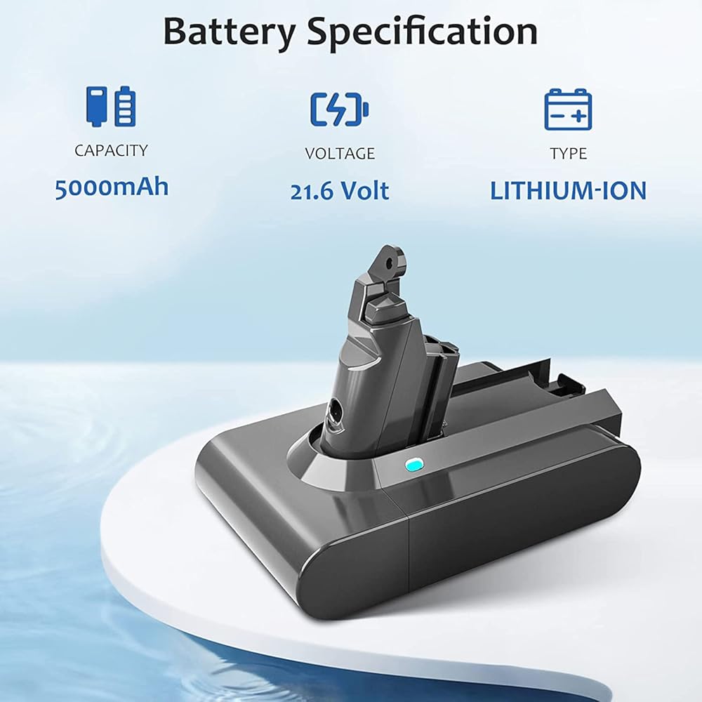Brand New | Battery Type: Lithium-ion| Voltage: 21.6 Volt | Capacity: 5000mAh | Replacement for V6 battery power your Vacuum Cleaner, make you work more effective.