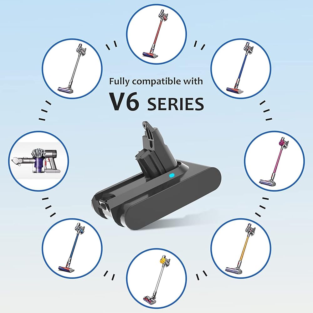 Compatible with V6 DC58 DC59 DC61 DC62 DC72 DC74 Absolute Animal 595 650 770 880 SV03 SV04 SV05 SV06 SV07 SV09 Handheld Vacuum and work for original V6 battery charger. NOTE:This model is v6 battery. Not compatible with V7, V8, V10, DC31.