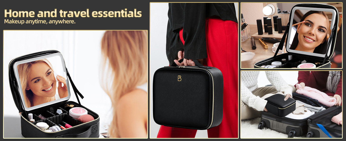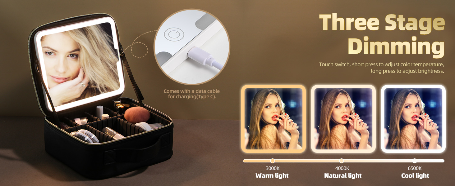 【Versatile 3 Color Fill Lights】– Our unique case includes a 4.3*10*9 in full-screen mirror with adjustable light-up functionality. While a gentle touch easily adjusts color temperature between cool, natural, and warm light. The mirror is designed to make applying your makeup a breeze, wherever you are.
