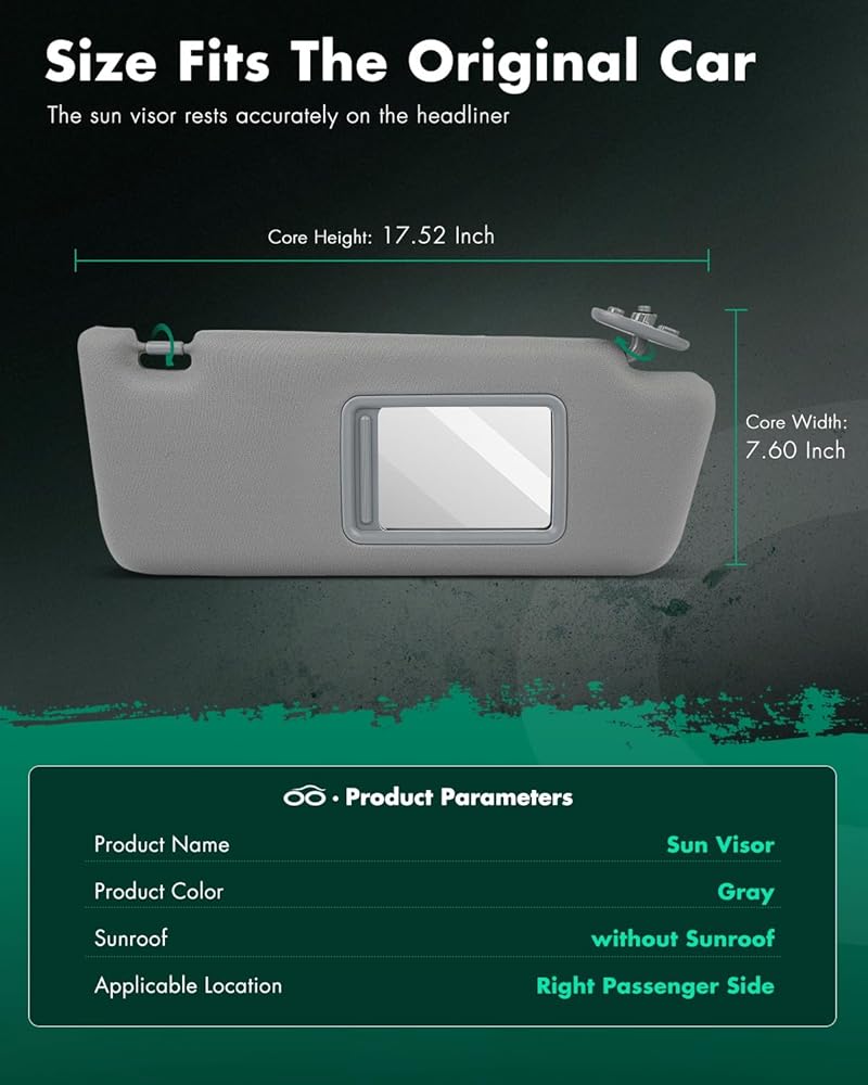 Snug Replacement: Best replacement for your old, broken or worn sun visor. And with our sun visor, you do not have to worry about strong sunlight interfering with your vision and ensuring comfortable driving.