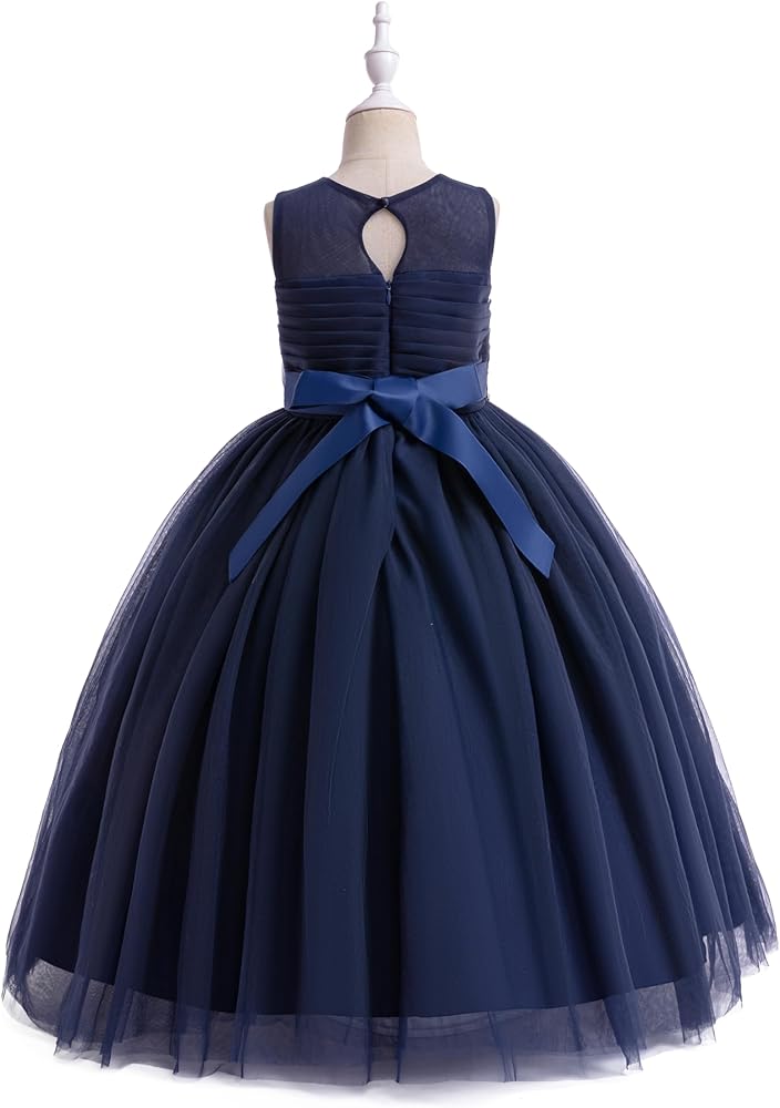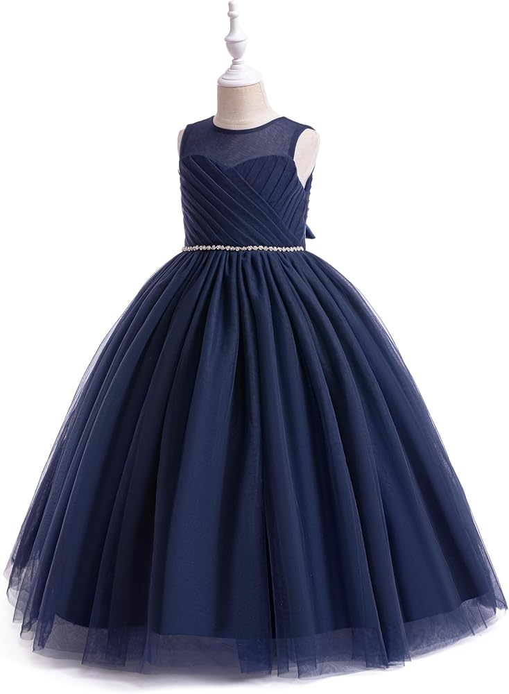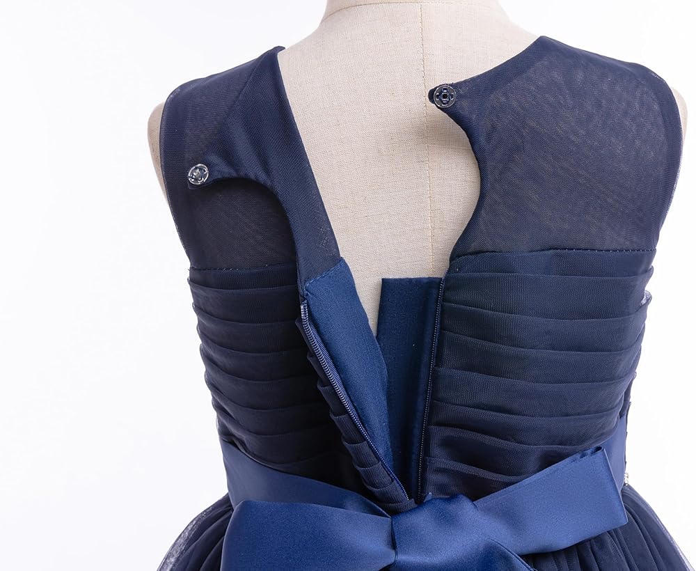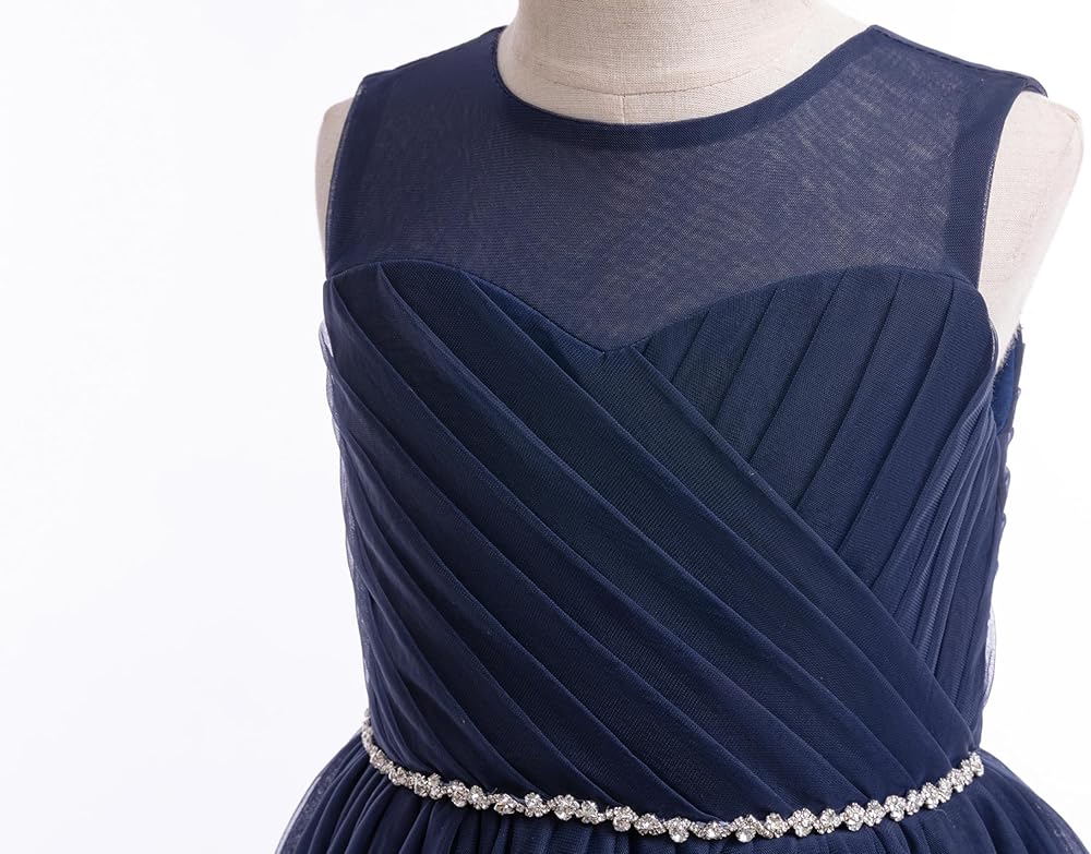 Design: Holiday bridesmaid dress girls. This beautiful inspired dress is made of charming pink tulle to make a dress fit for a princess. The bodice features with light tulle and neat folded tulle stitching design. Featuring shimmery high quality glass crystal rhinestones in silver settings in the front of waist. Hidden back zipper closure, satin fabric ties in a bow on the back. Our blush pink tulle dress will have your flower girls feeling like they are in a real fairy tale. Perfect year round.