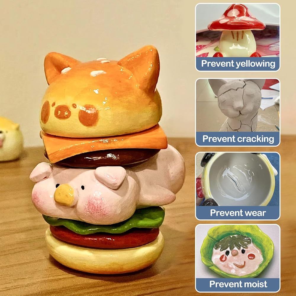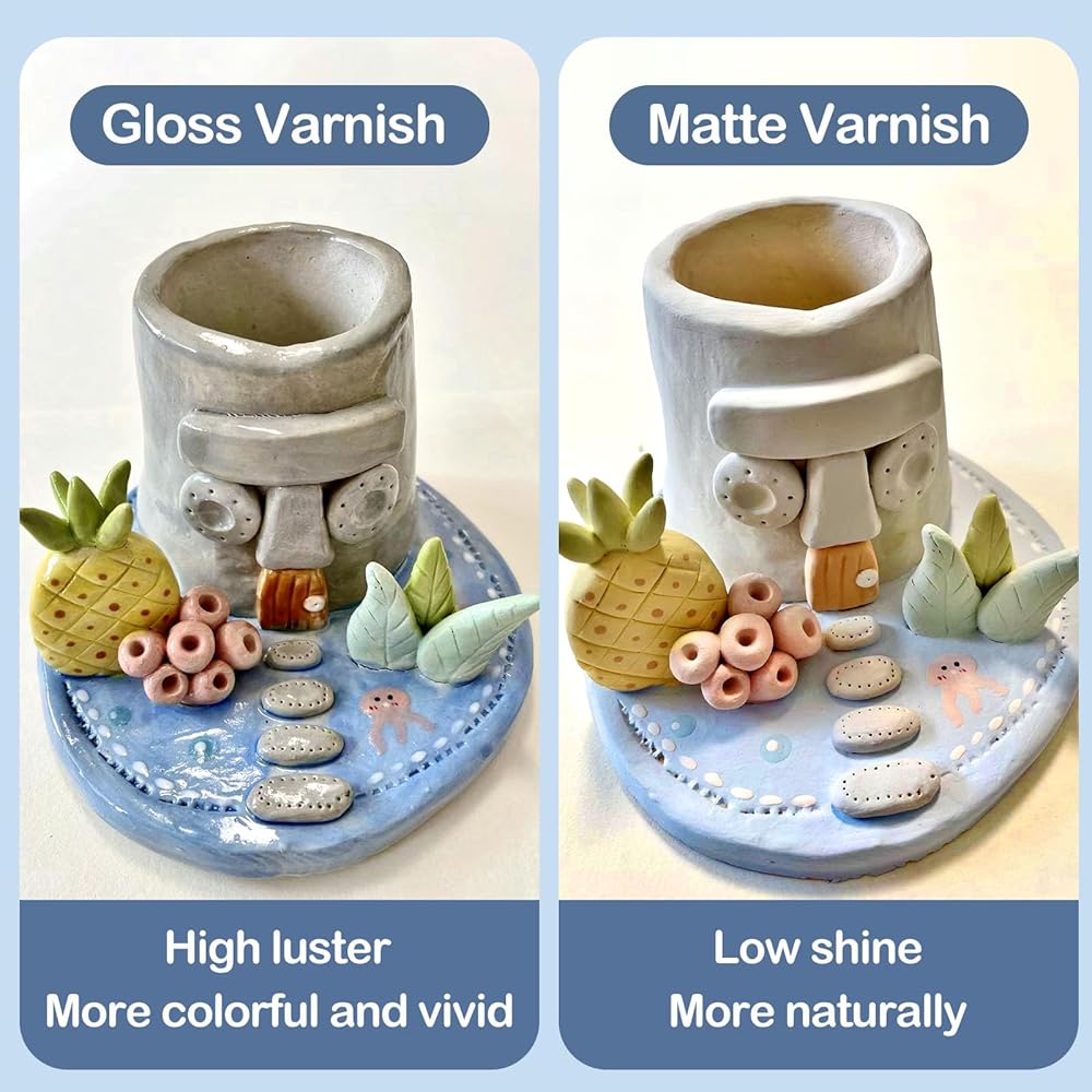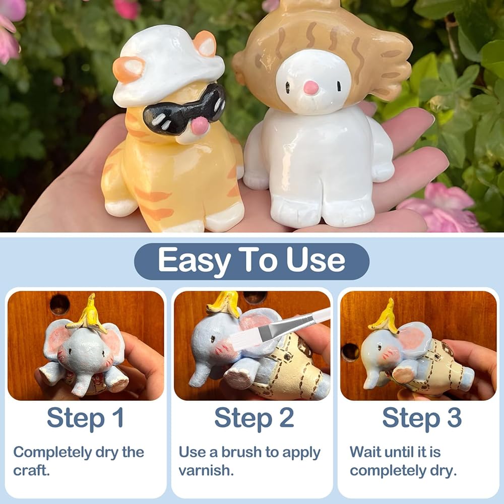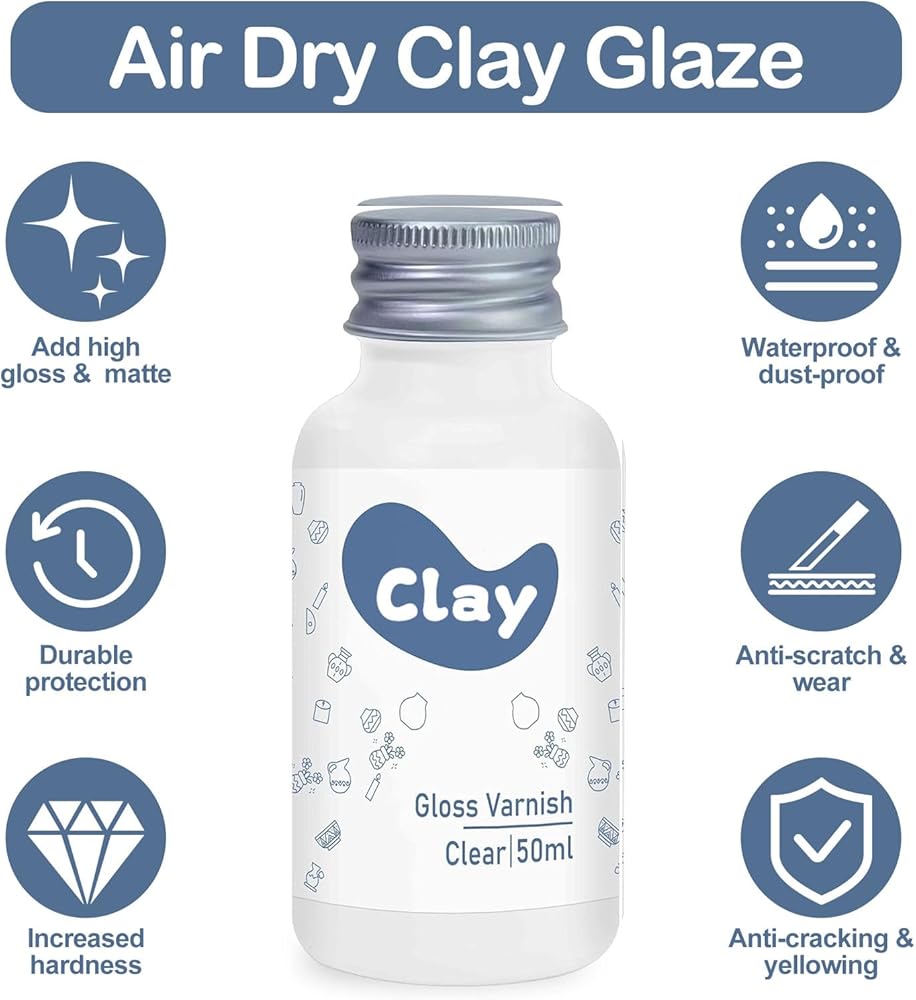 Air Dry Clay Glaze - The gloss air dry clay varnish specifically designed for air-drying clay, after applying our air dry clay sealer, the surface of the clay will form a protective high gloss glaze film, allowing your work to last forever!