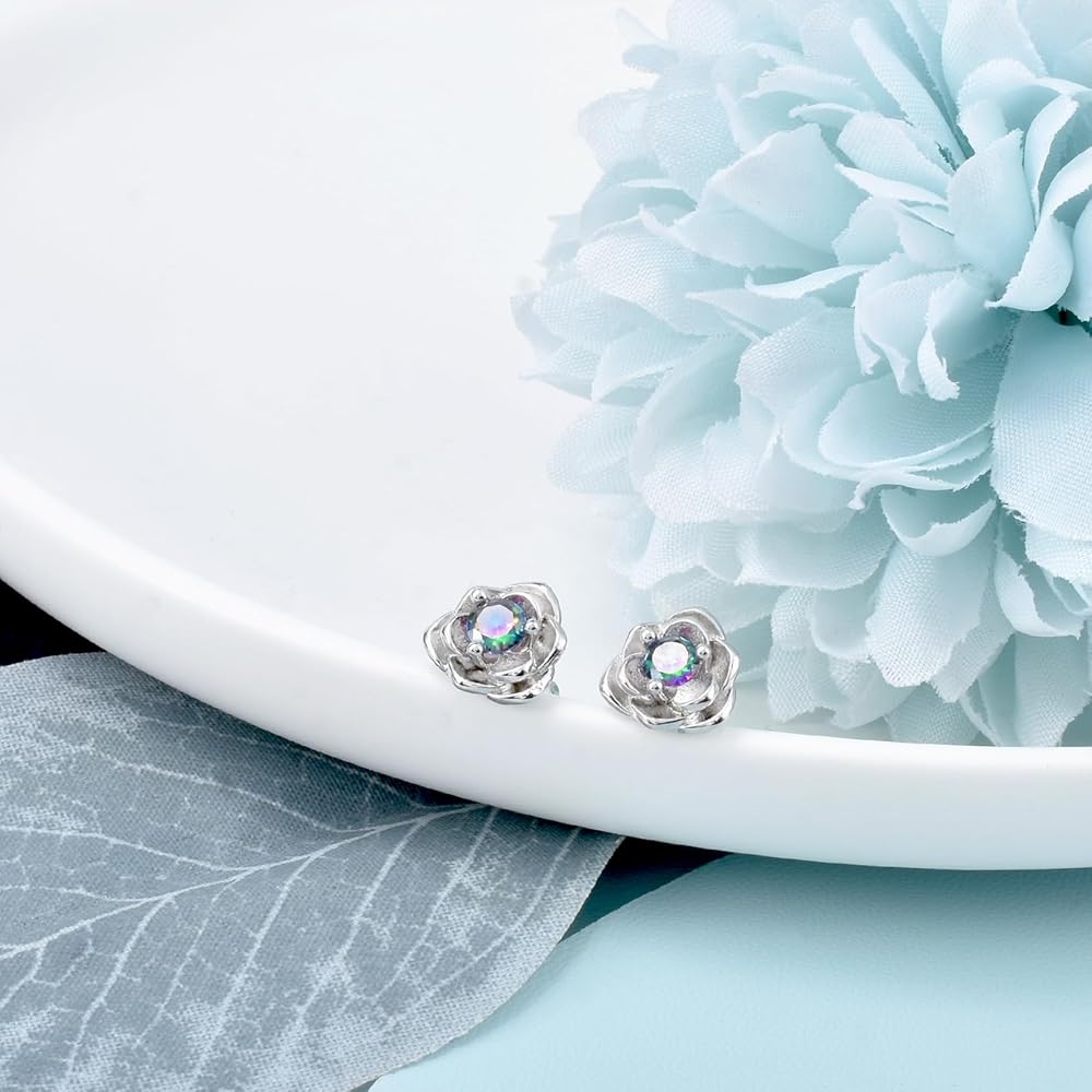 ◆ The size of women's rose earrings is 0.9 * 0.9CM/0.35 * 0.35inch. The size of colored cubic zirconia is 3MM. The weight is 2 grams. Lightweight earrings can be worn for a long time without burden.