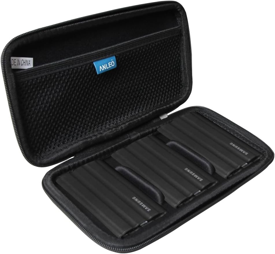 Anleo Hard Travel Case for Samsung T7 Shield 2TB / 1TB / 4TB, Portable SSD, USB 3.2 Gen2 External Solid State Drive (Black, Case for 3 Hard Drives)