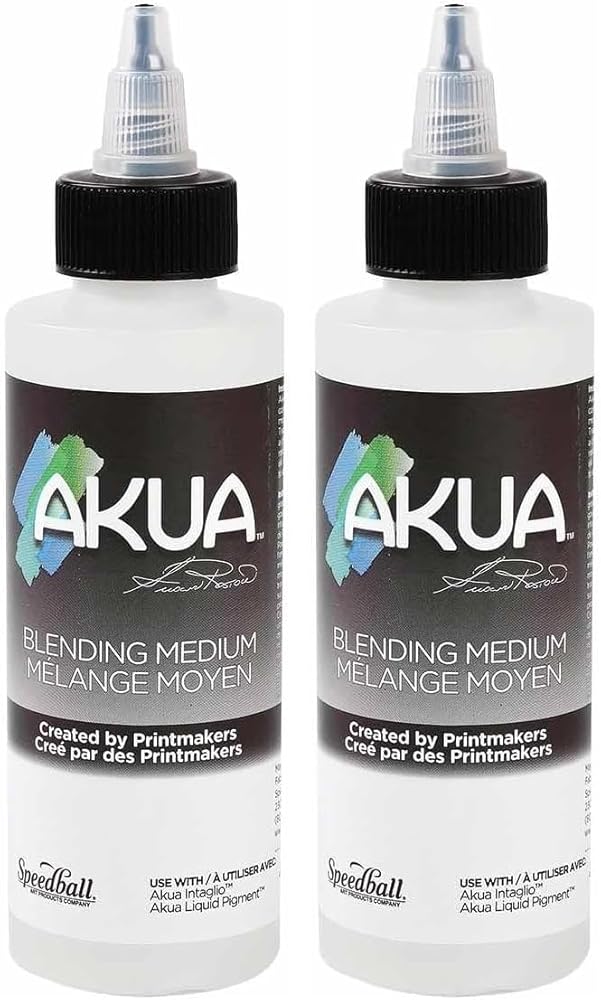 Akua Blending Medium is used to thin ink for brushwork, create wash effects or use as a resist for viscosity monotype. 4OZ (118ML) Bottle.