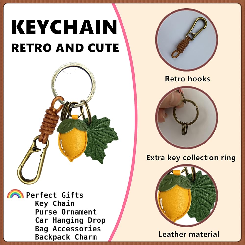 ✔【Details and Craftsmanship】:This fruit themed keychain is meticulously crafted with a combination of leather and vintage metal clasps. We pay great attention to details and attach a vintage wooden drawstring and multiple keyrings to this keychain for easy key collection. These demonstrate our commitment to quality, ensuring durability and a stylish appearance.