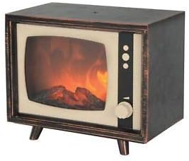 LED Faux Fireplace Flame Effect Retro TV - Battery Operated (3 - C Batteries not included). Dimmable light control with on/off switch. Dimensions of product 8.5x5x7. Sit back and relax in the hearth like glow of this compact, moving flame LED light feature. Perfect for cozy ambiance, in place of a fireplace, relaxing warmth or for any holiday especially Halloween.