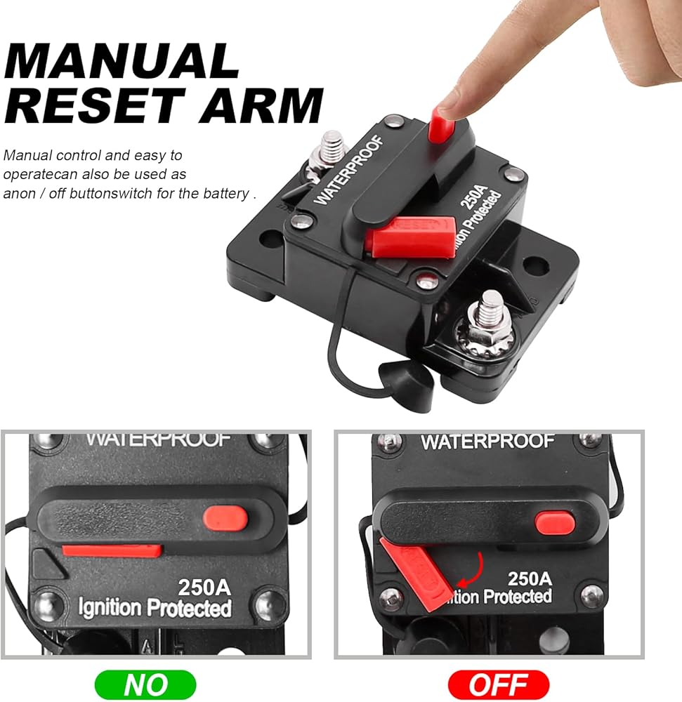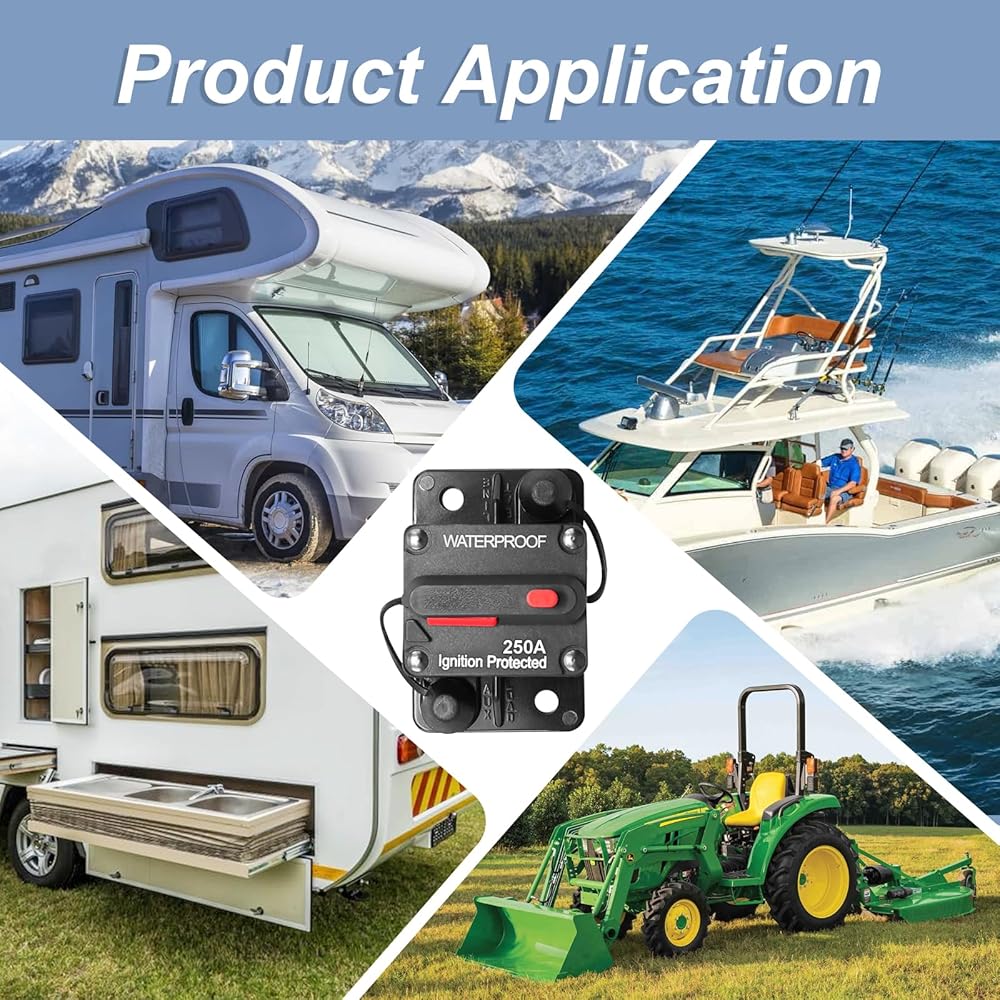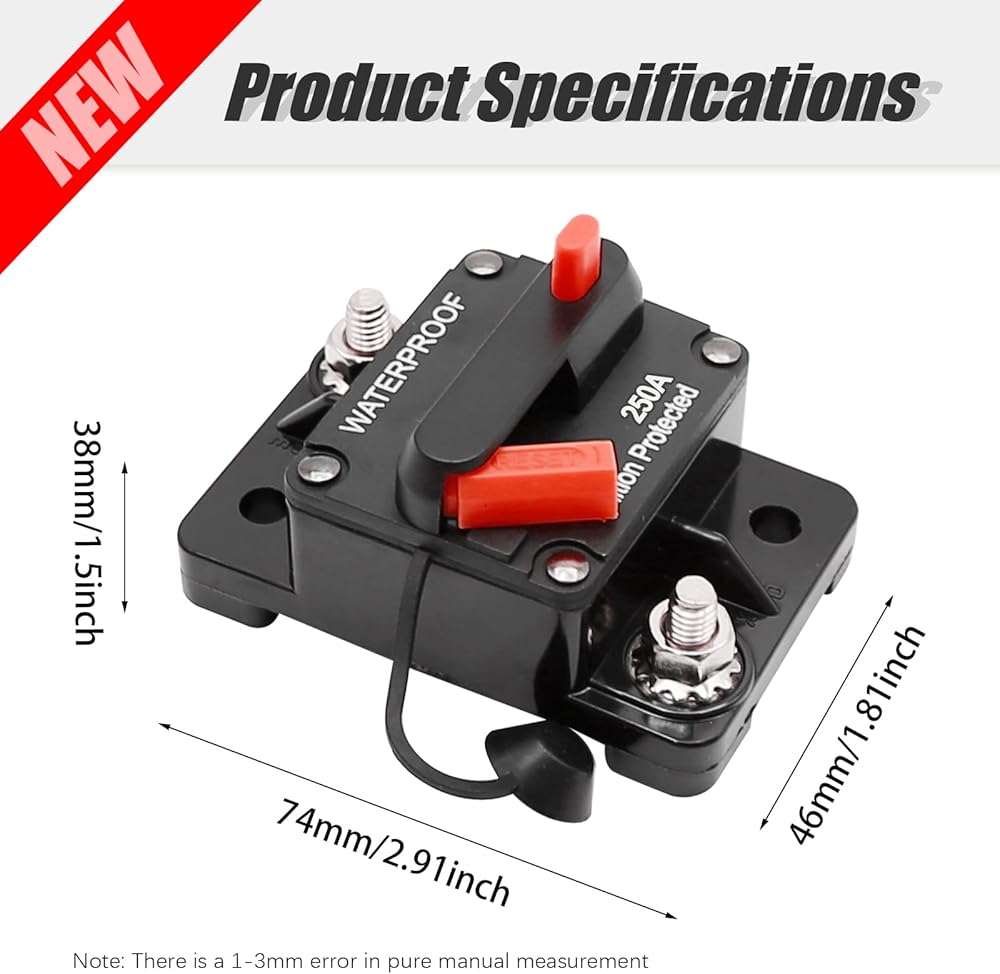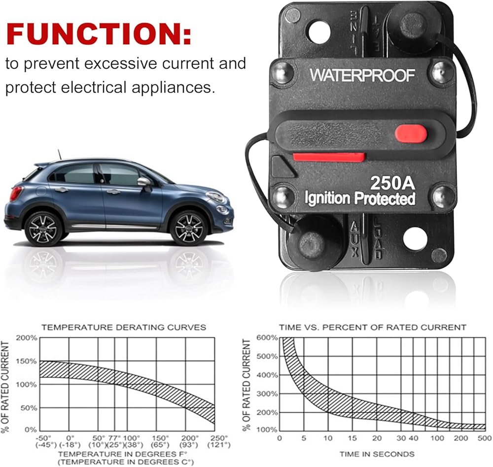 [Function]: For a wide range of DC system voltages from 12V to 48V. Designed to protect the system against overcurrents caused by high power consumption, short circuits, wiring errors, equipment failures, or any other high current event. It also protects the power supply from battery rupture or explosion due to short circuits.