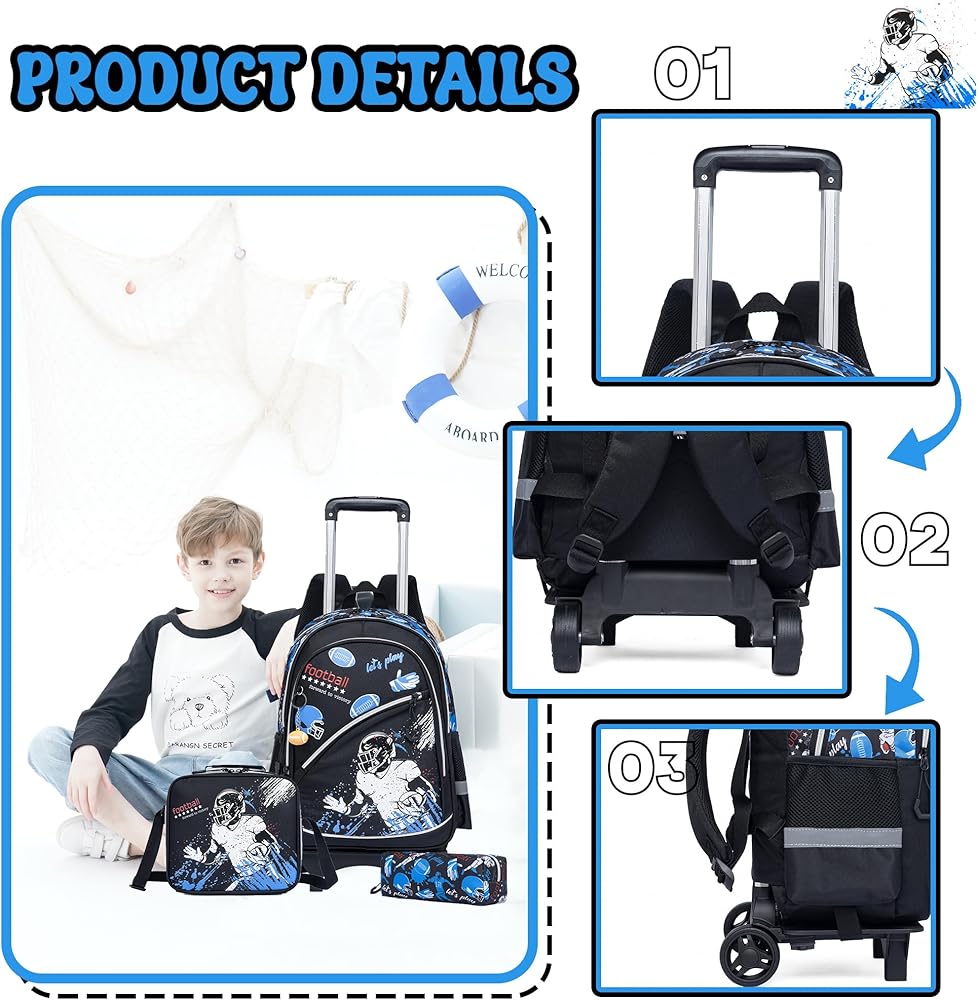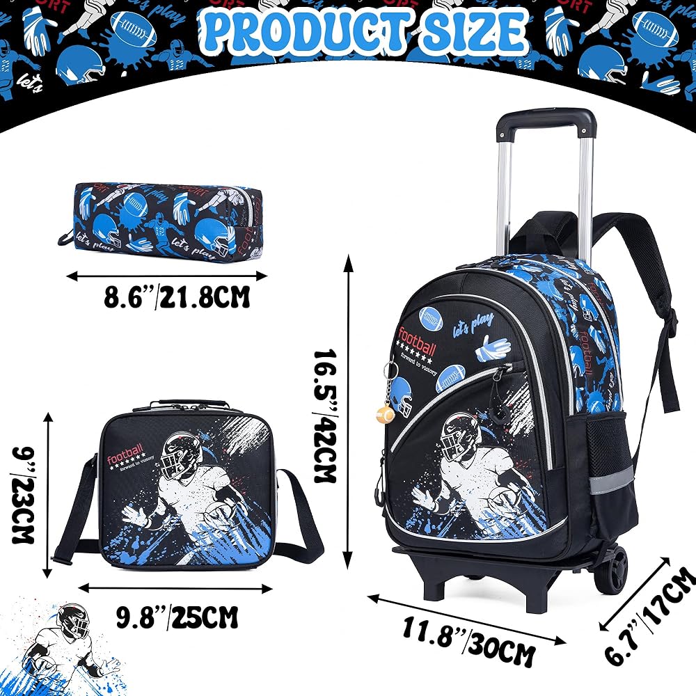 [Boys Rolling Backpack Size]Backpack:16"X11.8"X7";Lunch Box:8.2:X9"X4";Pencil Case:9"