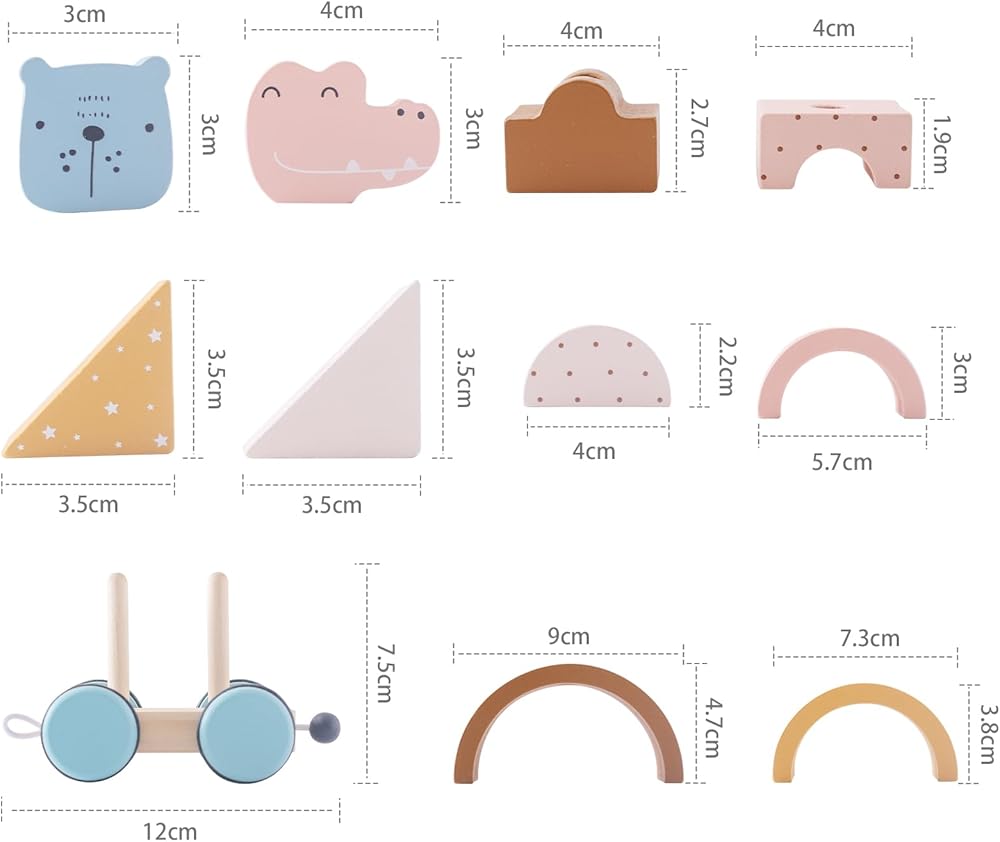 Educational benefits - The stacking train set allows kids to build, stack, and roll to helps develop imagination during young children's free play and fine motor skills. Building blocks of various shapes and colors, with basic lines and patterns that allow children to identify and distinguish shapes, colors, etc.