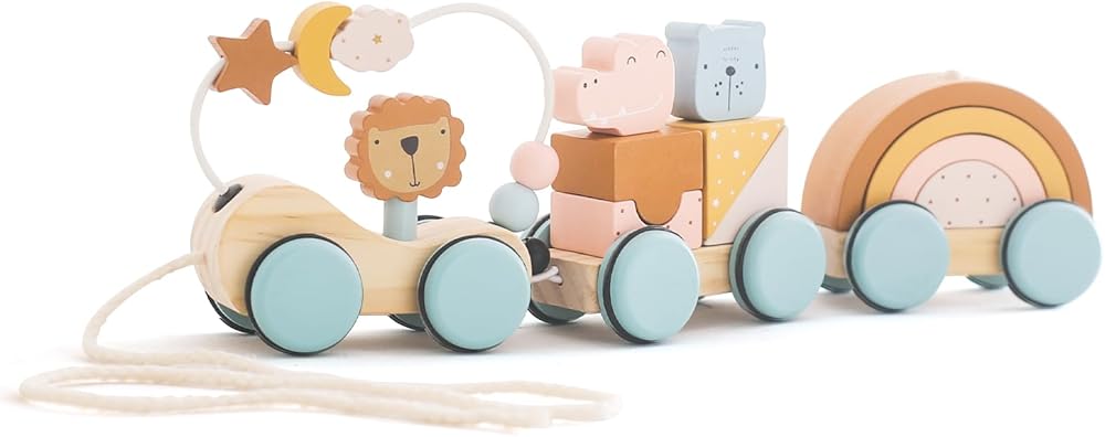 Effortless Mobility - Our wooden pull along toy is designed with a string attached to the front train car, so your little one can easily pull or push this cute train set to move forward throughout the house and on the go.