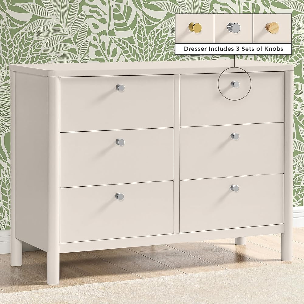 TIMELESS DETAILS: Dresser comes with 3 sets of colored knobs - Natural Wood, Brushed Nickel and Melted Bronze| Dresser available in Bianca White and Midnight Grey