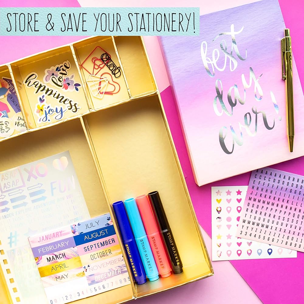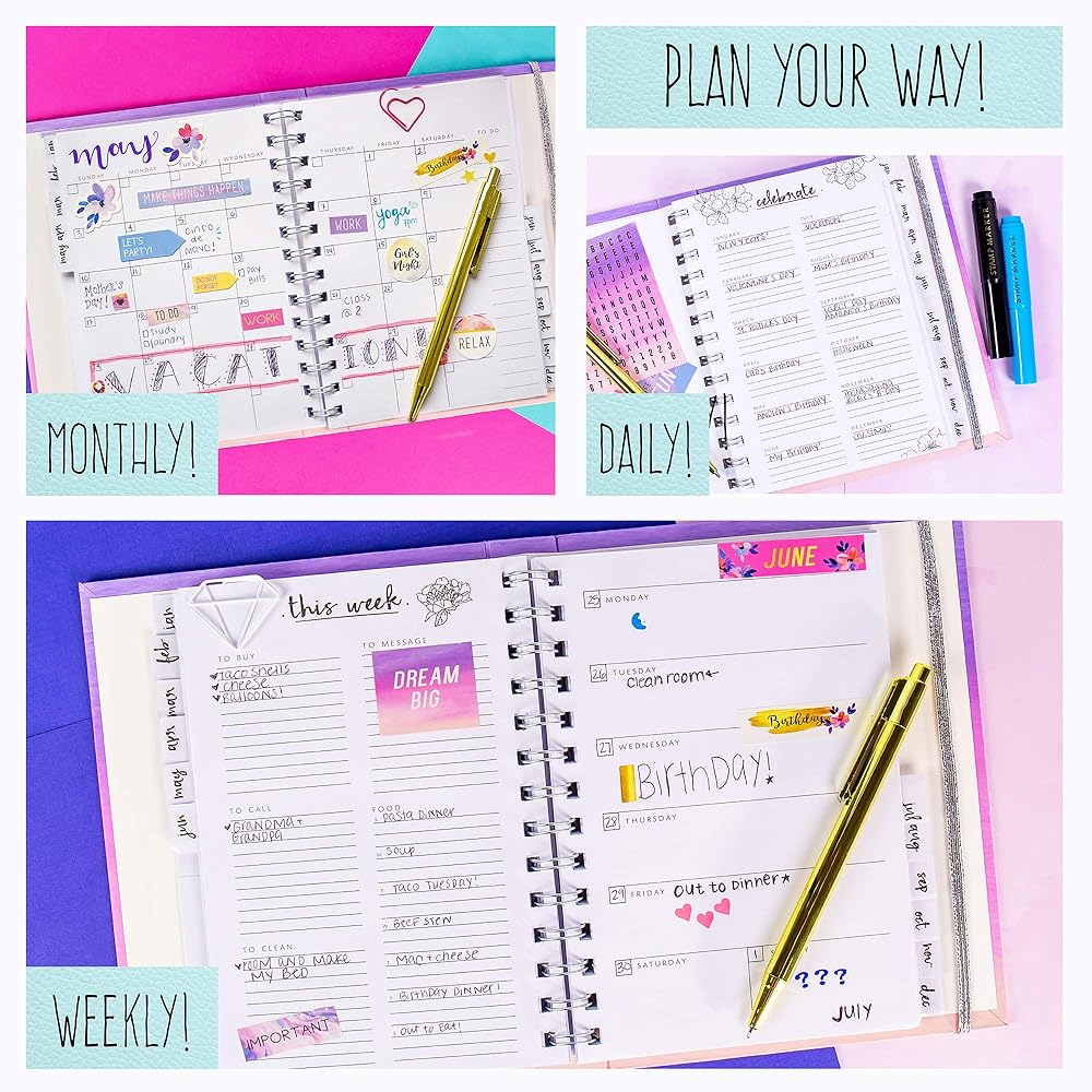 Life is busy, but you've got it under control! Learn to stay organized and enjoy the benefits of being ahead of schedule when you use the STMT D.I.Y. Daily Planner Set! Pen down important dates, goals, and future plans with friends and family so that life doesn't get too hectic. Every page becomes uniquely yours as you enhance your writing with trendy stickers, markers, colorful paper clips, and more. With 3 different views — daily, monthly, and weekly — you're sure to stay on track. Plus, the unmarked pages mean you can start using this planner any time of the year! Great for kids, tweens, and teens to use in school or at sleep-away activities like summer camps. Express your creativity with every page and learn the important skill of being detail-oriented as the year goes on! Pair with other STMT products like diaries, journals, agendas, and more to express your style and stay organized. A great way to foster independence and encourage creative expression for kids and adults ages 8 and up.