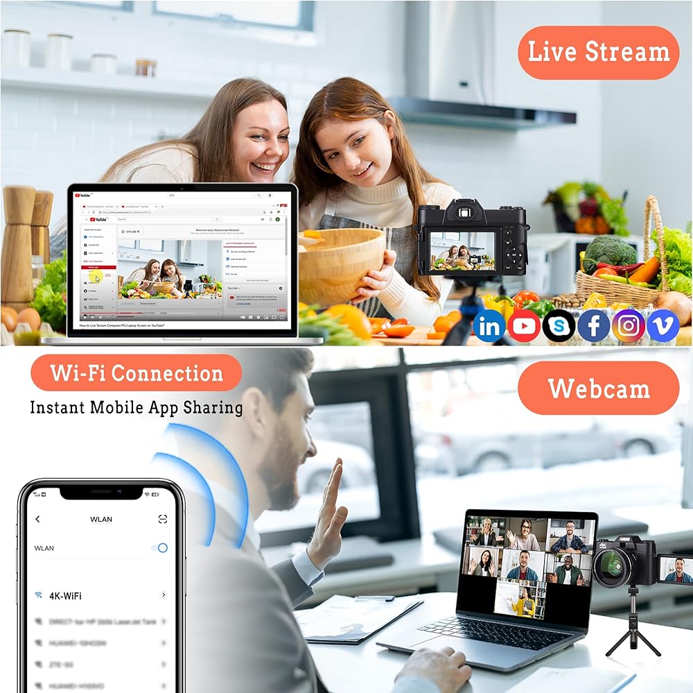 【Vlogging Camera as Webcam】The digital camera can be used as a webcam by connecting it to the PC with a USB cable, allowing you to enjoy video calling on Skype or live streaming on Tiktok, YouTube, Facebook, or other social media platforms.