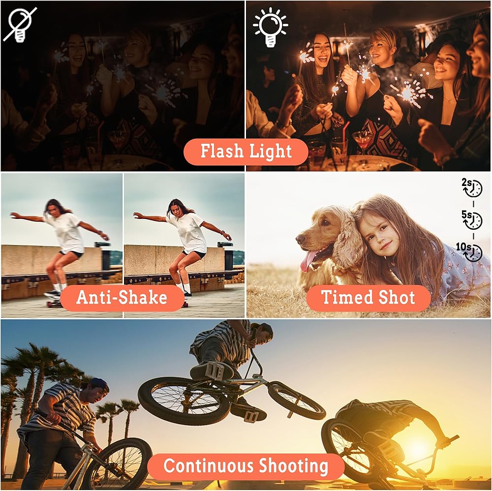 【Dual Cameras】This cameras for photography offers the convenience of both front and back camera options for photography. Seamlessly switch between the front and back cameras at any time, just like using your phone. Please note the front camera not feature the auto-focus function.