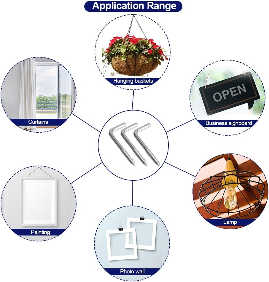 [Durable material] These L shaped hooks are made of strong carbon steel with galvanized surface technology, rust resistant, durable, corrosion resistant and rust resistant.