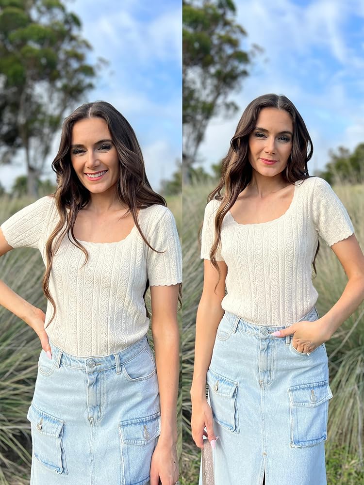 Stylish Design: Business casual tops for women feature with short sleeve, square neck, ribbed neckline and hemline, crochet pattern details are full of design and keep the fashionable and avant-garde look. Basic tops for women designed to show off your beautiful neck are elegant and vintage, suitable length to cover the belly, suitable for all body types.Please refer to the size chart before ordering. S=US 6-10, M=US 12-16, L=US 18-22, XL=US 20-24, XXL=US 24-26