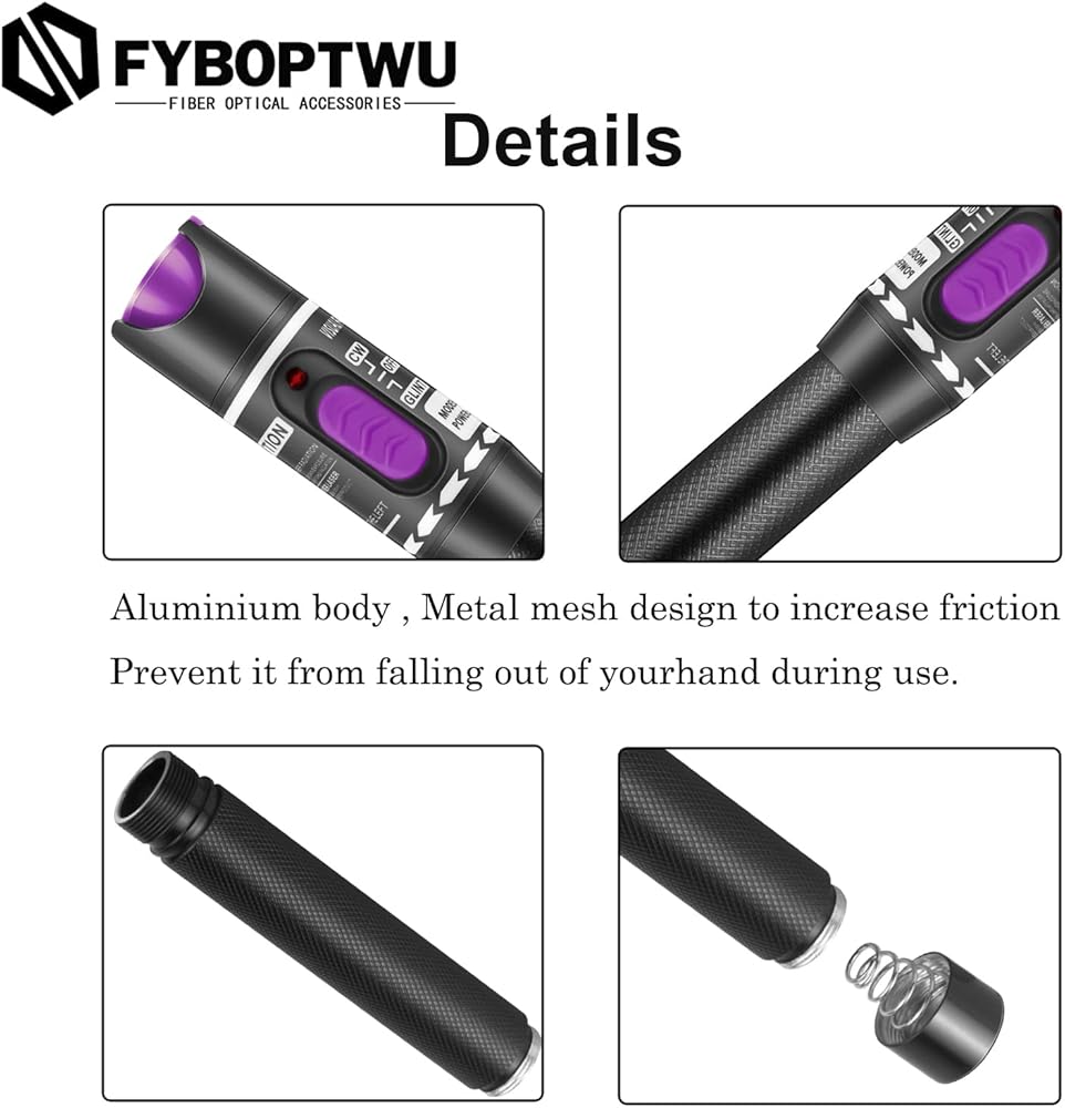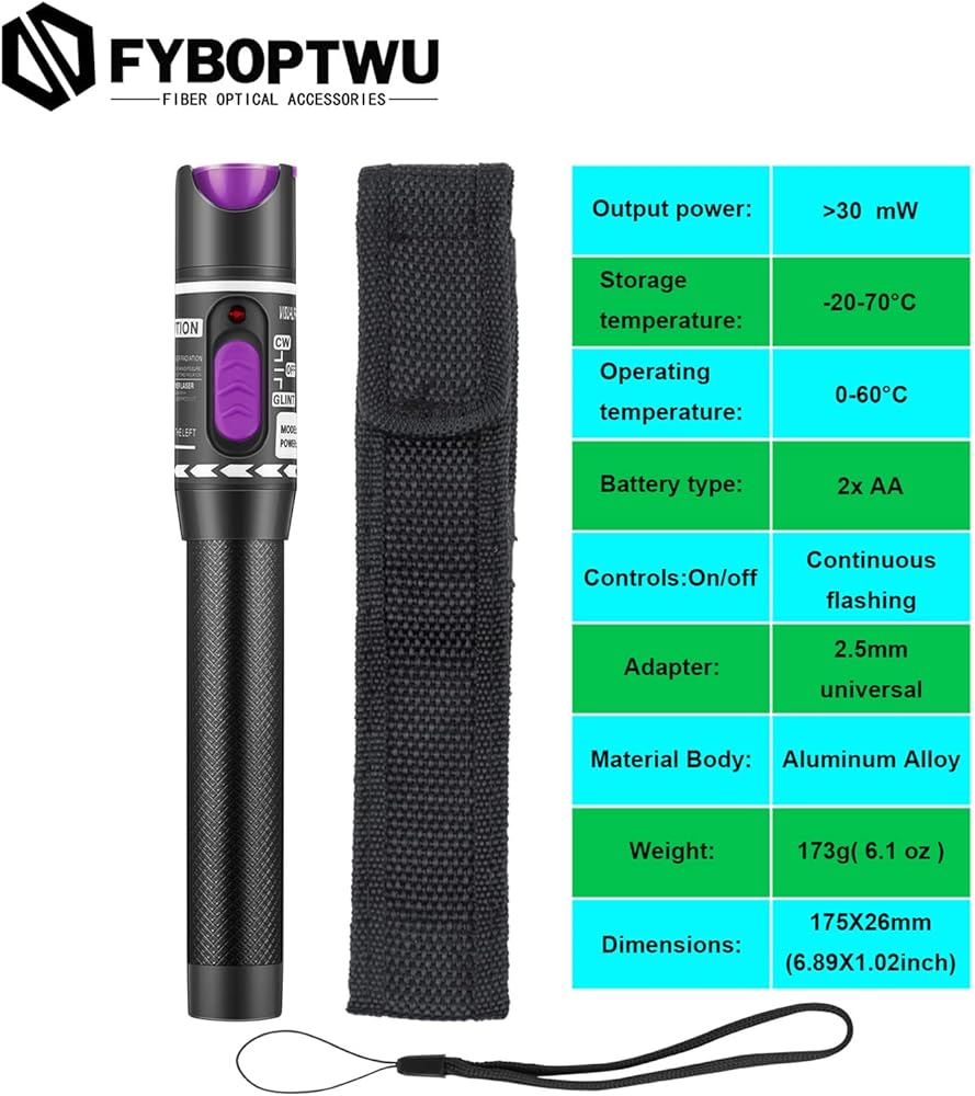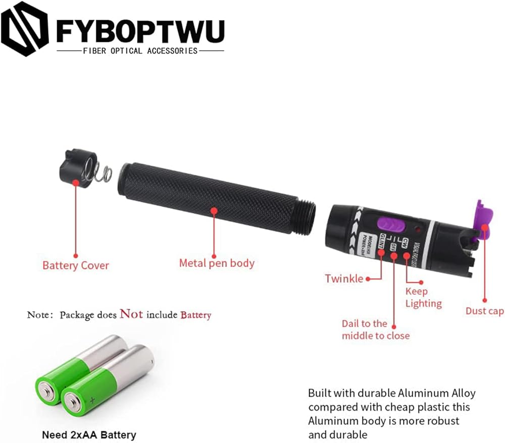 【Functions】 The Fiber Optic Visual Fault Locator can detect fiber connectivity and locate fiber faults, such as fiber breaks or bends. In addition, it also has functions such as fault detection in the OTDR blind zone, end-to-end fiber identification, and mechanical continuous point optimization. (Package does not include battery)