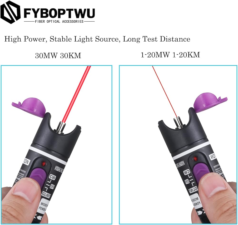 【Ultra Long Distance Test】The 30MW Fiber Optic Visual Fault Locator (the fiber optical fault detector) has a strong source output power, which can detect fiber patch cord faults within 30 kilometers.