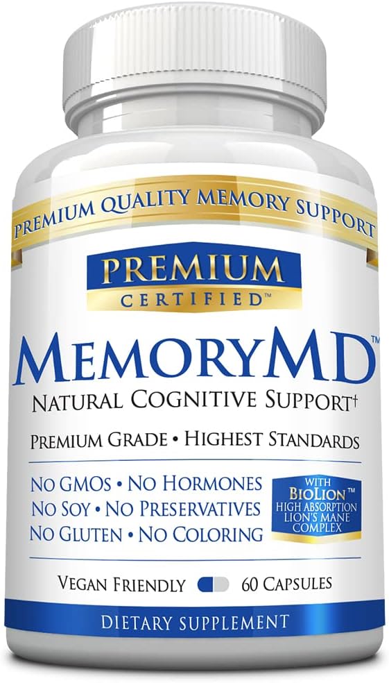 MemoryMD - 60 Capsules - Vitamin B Blend, Lion’s Mane Mushroom, Bacopa Monierri - Enhance Memory, Focus, and Learning - All Natural Supplement, Made in USA, Vegan, Non-GMO