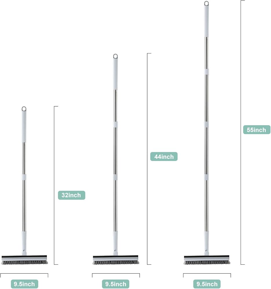 💖【Adjustable Stainless Steel Handle 】Easy to assemble, scrub brush comes with 4-section stainless steel poles. You can adjust the handle length from 32" to 55" by adding or removing the number of poles. Strong stainless steel handle can withstand higher pressures than other aluminum handle without bent or rust issue. excellent tool for cleaning grout