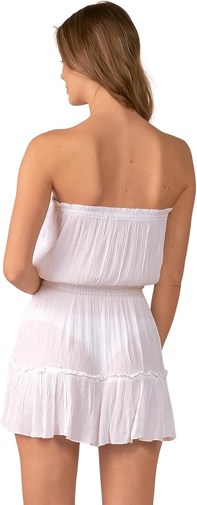Featuring: Strapless/tube neck, ruffled hem, drawstring waist, and light weight.