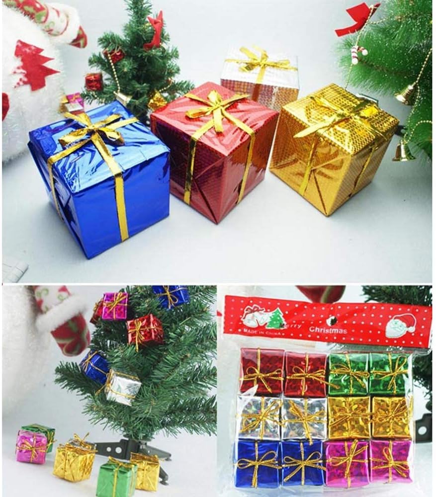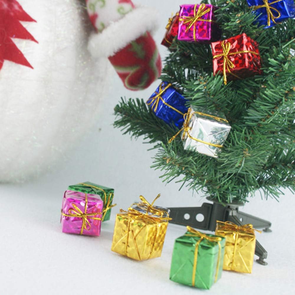 1 inch Christmas Tree Decor 24 Pcs Mini Christmas Assorted Color Foil Boxes Handmade Gift Boxes Tree Ornaments,Assorted Colors