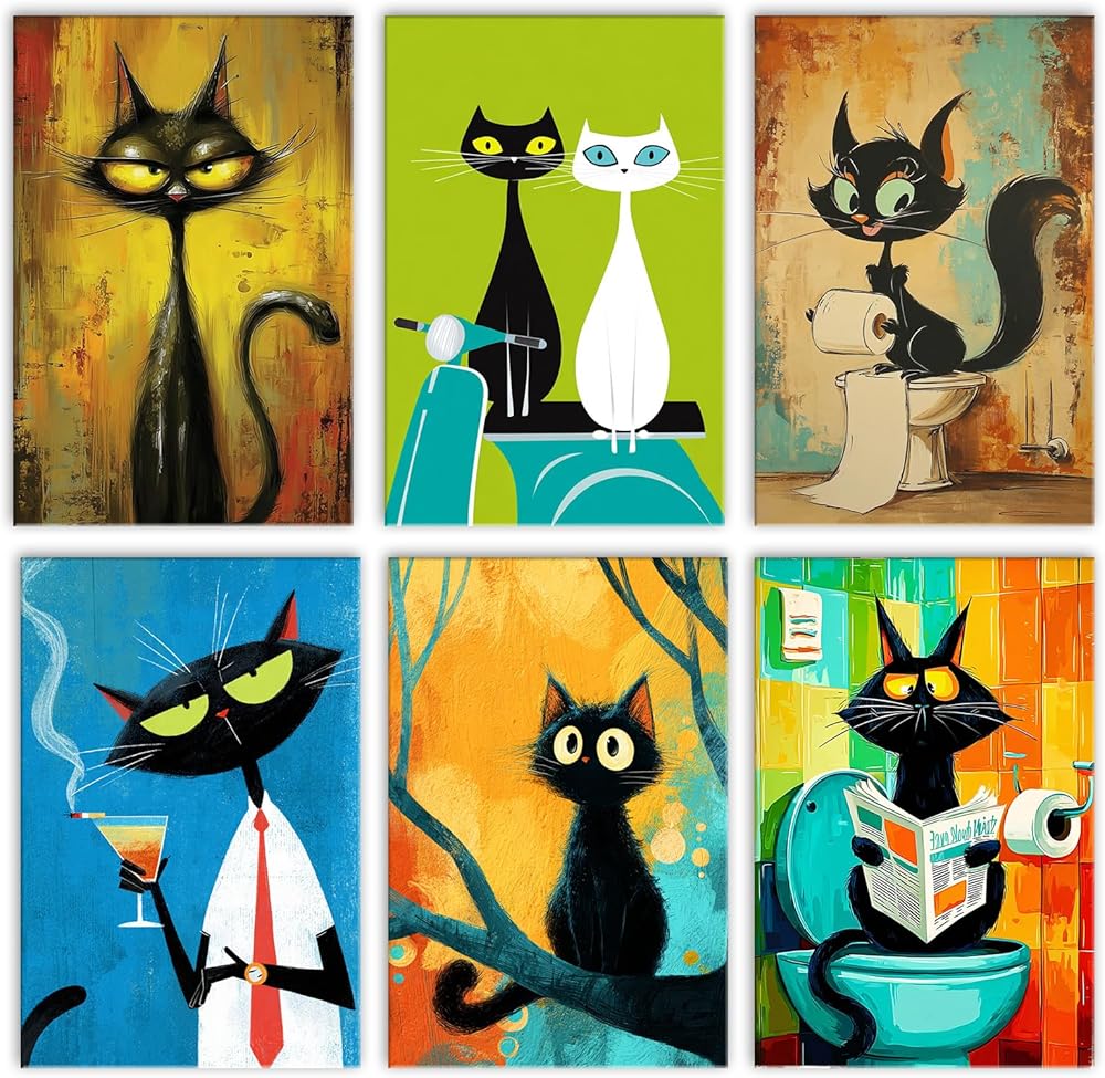Aihonmin Black Cat 6 Pack Paint by Numbers Kit for Adults Beginners on Canvas,Animal Cat 6 Pack Pre Drawn Canvas for Painting Acrylic Paintwork for Home Wall Decor Gifts 8x11.8Inch (Frameless)