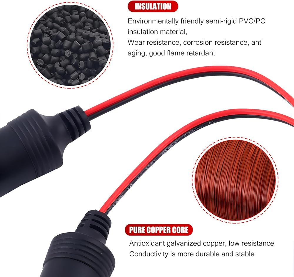 Multiple Security Protection: This heavy-duty cigarette lighter extension cord uses pure copper wire to provide stable current to your device. Plastic insulating protective cover with the best thermal insulation effect. The male plug has a built-in replaceable 15A safety fuse to cut off the current in time and has overcurrent, overvoltage, overload, overheating and short circuit protection.