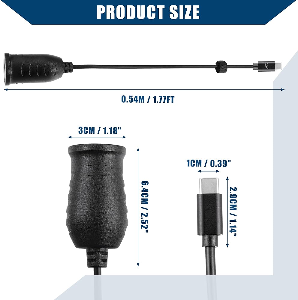 PACKAGE LIST: 1 Pcs USB Type C Cigarette Lighter Cable.