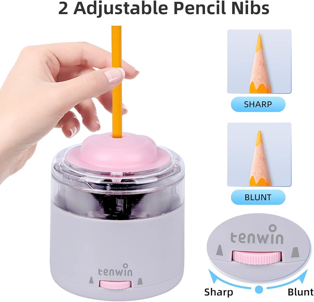 Suit for The Pencils of 6-8mm with 2 Pencil Nibs: This pencil sharpener is fit to almost all 6-8mm pencils. Not only the No.2 and colored pencils but also for the hard wooden pencils. It could also sharpen the round, hexgonal and triangual pencils. And it equipped with 2 sharpness setting for you, sharp & blunt. It's easy for you to switch the sharpness mode which you need.
