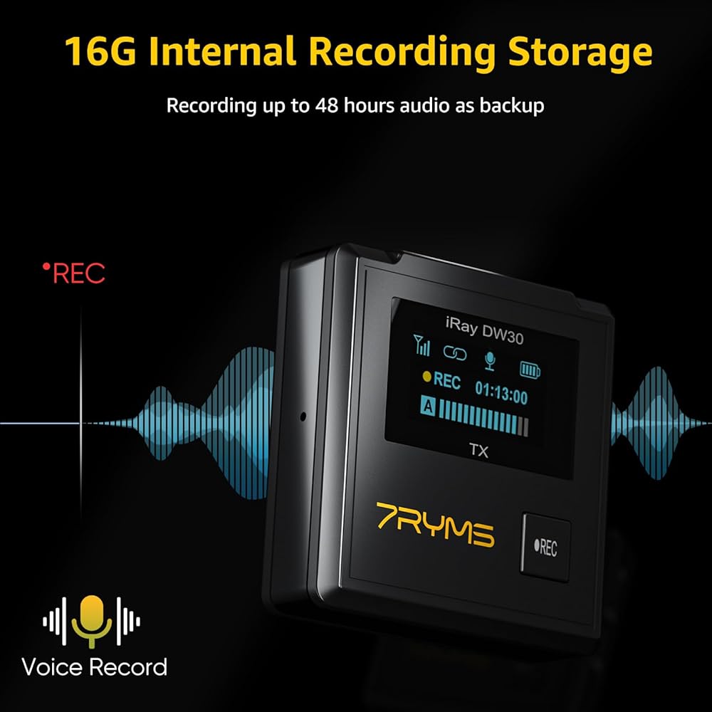 iRay DW30 Wireless Lavalier Microphone with 16GB Internal Recording, Lav Mic Input, USB-C Output, 2.4GHz Wireless Mic for Camera, iPhone, PC - Ideal for Vlogging, Live Streaming, and Video Recording