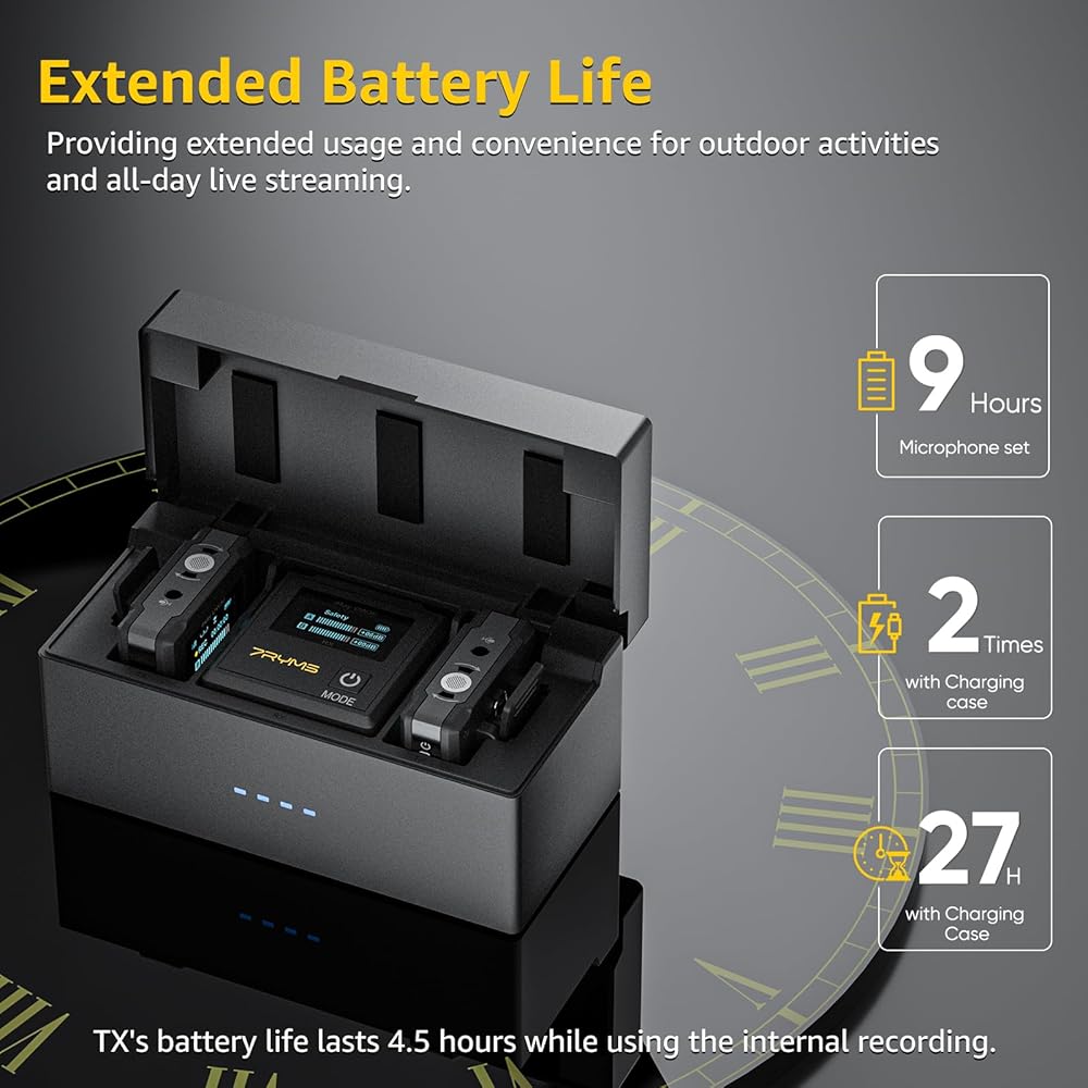 Extended Battery Life: The DW30 wireless microphone system offers 9 hours for RX, 15 hours for TX without internal recording, and 5 hours with internal recording—it's perfect for all-day streaming and outdoor activities. Stay powered and focused on your content creation with the DW30.