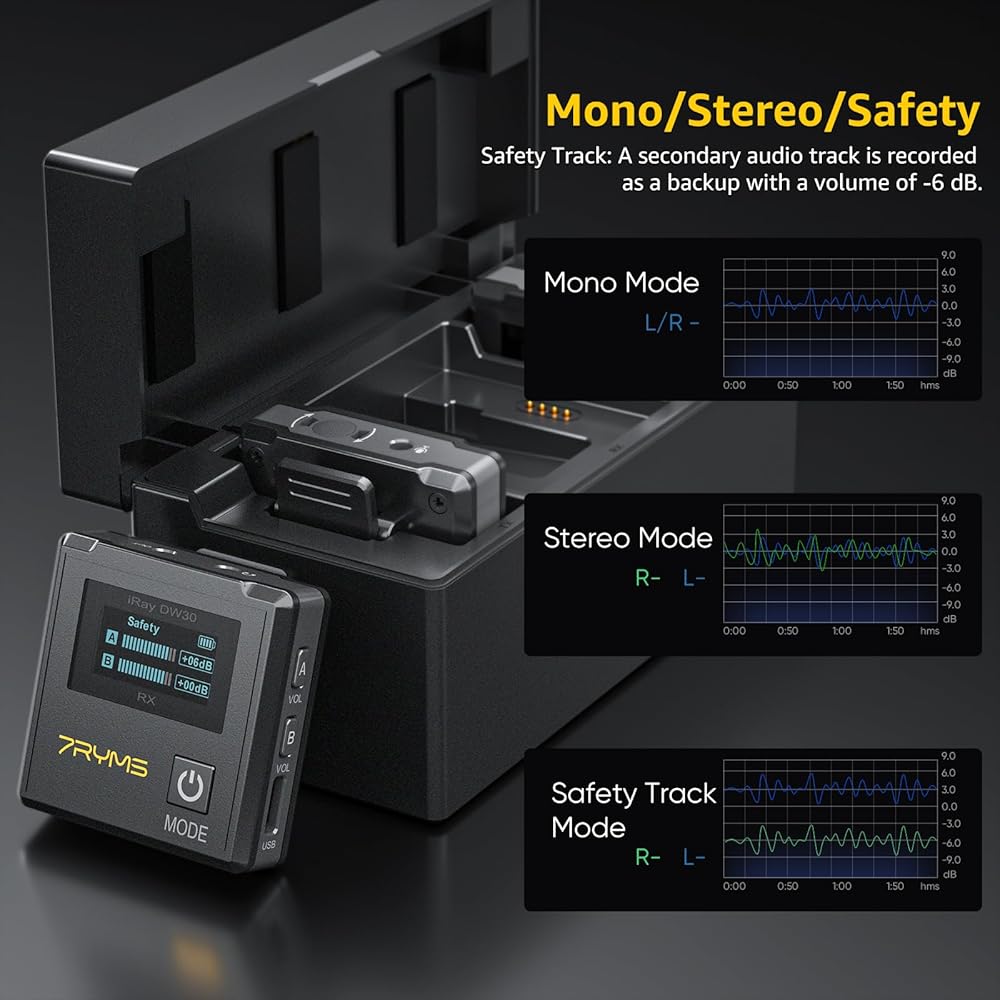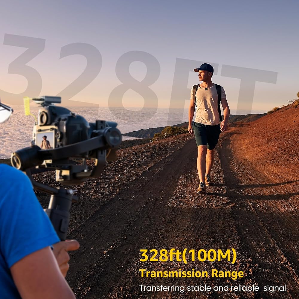 328ft(100m) Transmission Range: With an impressive 328ft (100m) transmission range in open spaces, the iRay DW30 wireless camera mic provides stable and reliable signals, making it easy to navigate complex environments. The receiver supports both internal and external lav mic recording, featuring a secure locking buckle design for windscreens.