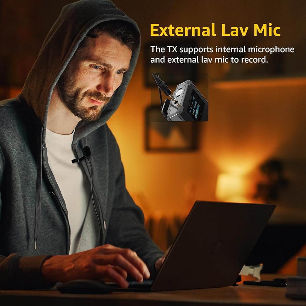 16GB On-Board Recording: With a built-in 16GB memory, the DW30 wireless lavalier microphone ensures worry-free recording for up to 48 hours. Start or stop recording with a single button, providing seamless convenience without dropouts or audio issues.