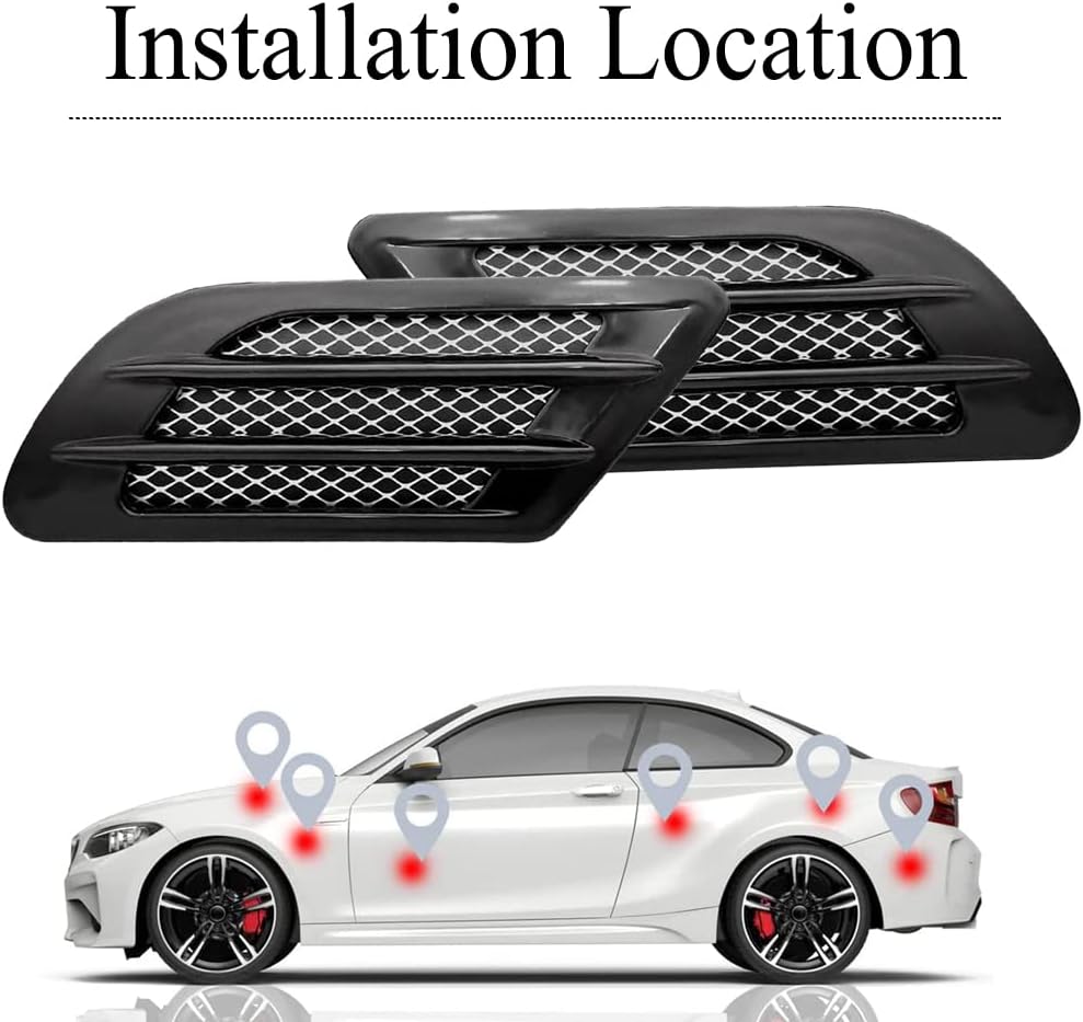 [High quality material]: The decoration of the automobile side network vent is made of high quality ABS plastic, which has anti-scratch and anti-stain properties, waterproof and can be used for a long time.