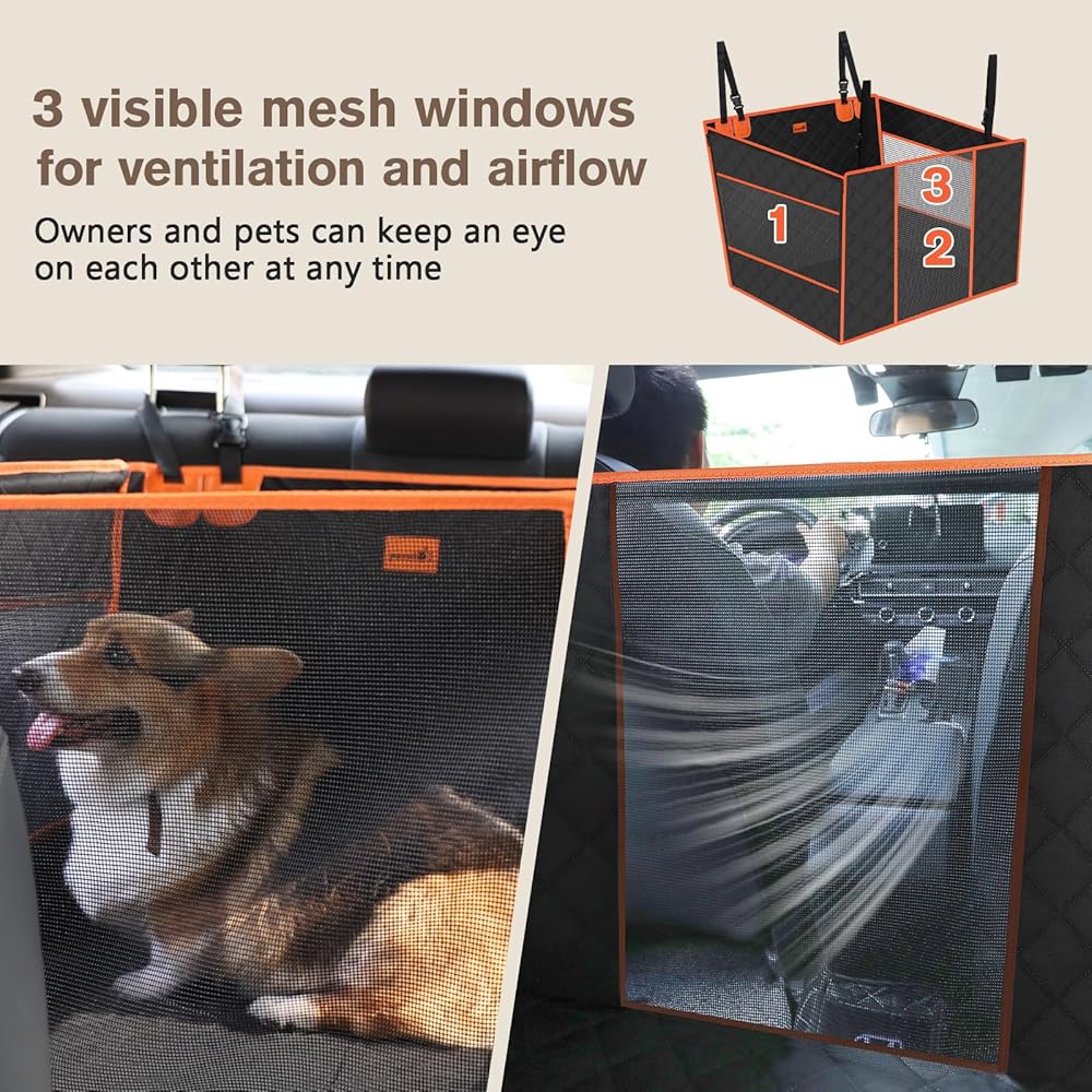 🐾【3 Grid Design】: Our dog car seat cover adopts mesh design in the front and two sides, so you can check on your dog from different perspectives at any time , and the dog will not feel anxious or scared when he can't see his owner. ⭐⭐In addition, the mesh has good breathability and will not block the discharge of the air conditioner, allowing the dog to feel the cool wind.