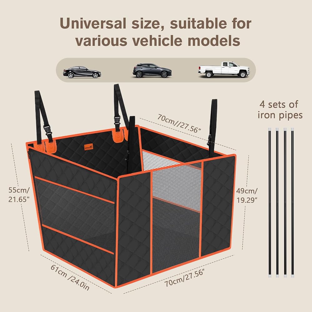 Pecute Dog Car Seat Cover for Back Seat with Hard Bottom, Extra Extender Dog Half Hammock for Large Dogs, Foldable Waterproof Pet Car Half Seat for Back Seat with 3 Visible Mesh for Some Car SUV Truck